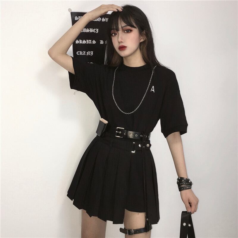 色:ブラックT+チェーン,ショートスカート+ベルトレッグリング