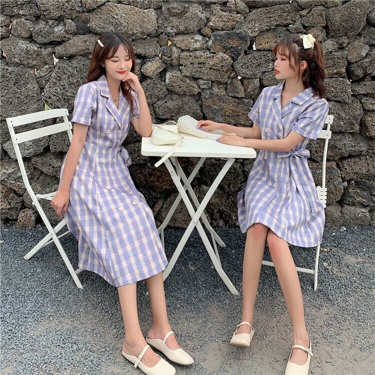 サマーレッドドレス ハイウェストウェストカラー半袖スリーブスカート ショート ハーフスリーブ 夏物 misskkl49377130981