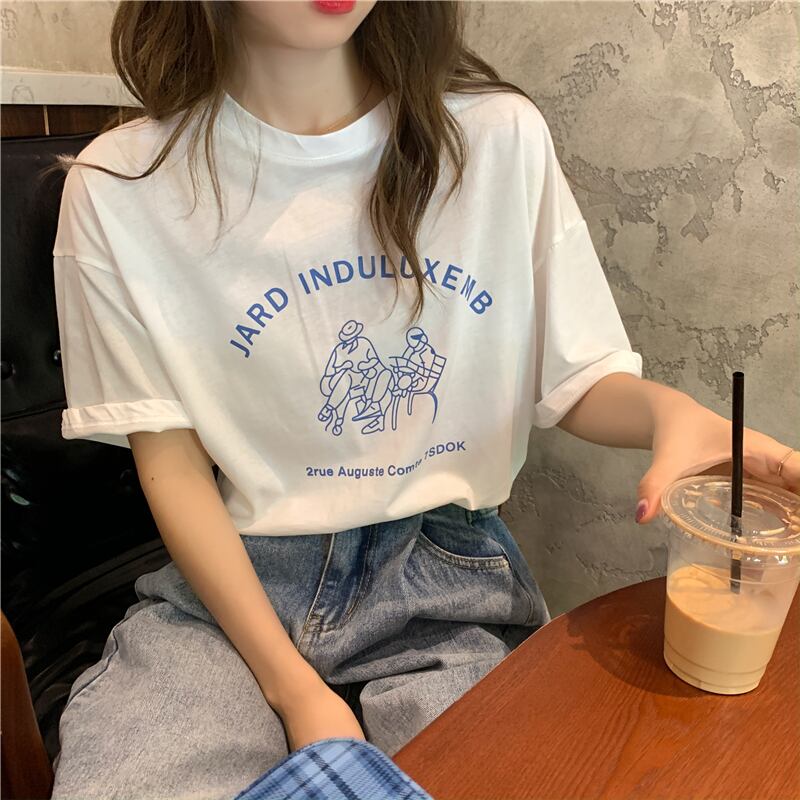 サマールーズプリントレッドホワイトTシャツ トップス 夏物 misskkl84368806346
