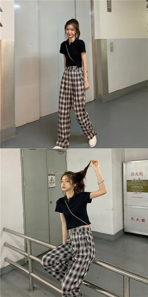 サマーハイウェスト薄手カラー格子柄スタイル 夏物 misskkl74986504211