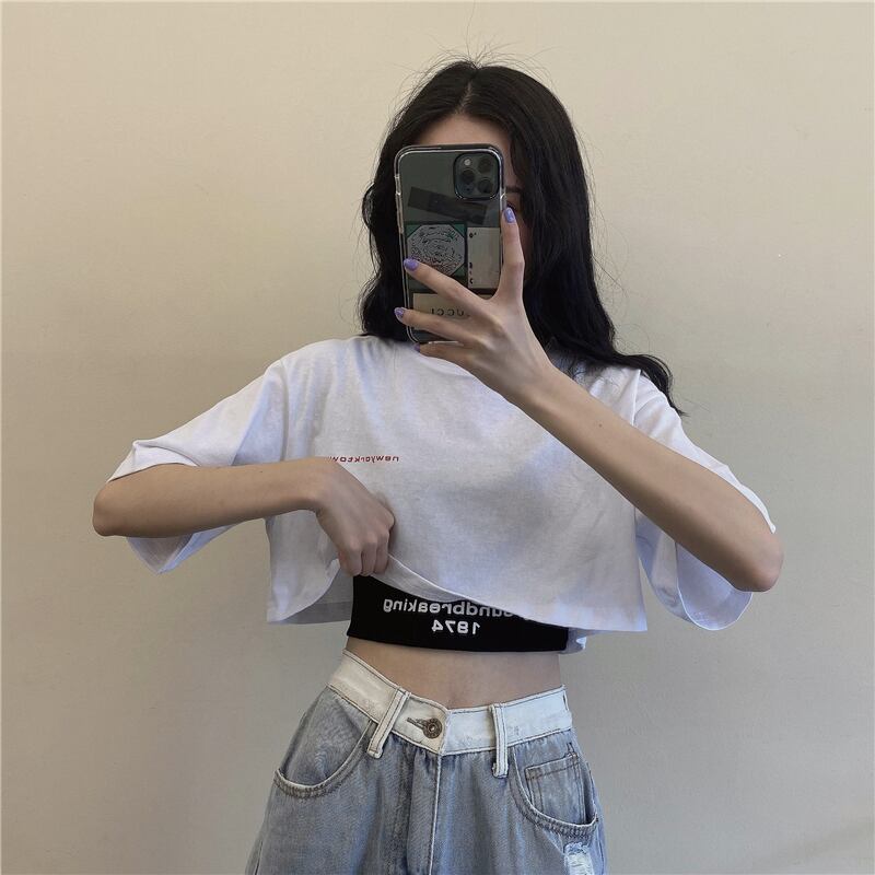 ホワイトショートTシャツ サマーハイウェストルーズトップス 夏物 misskkl26083348850