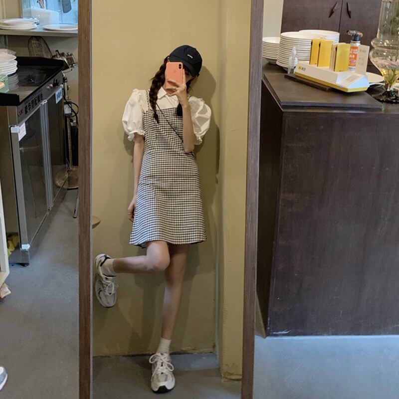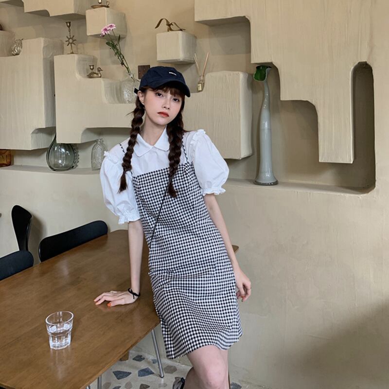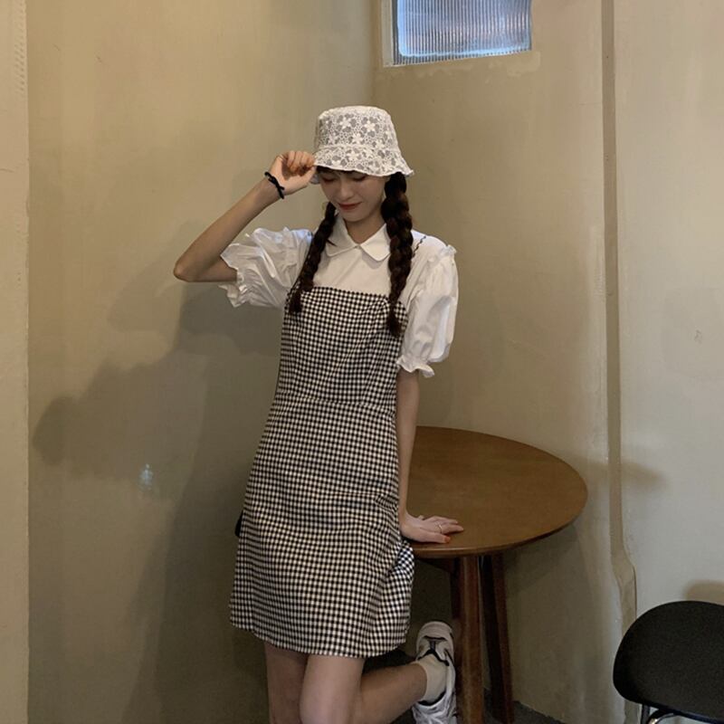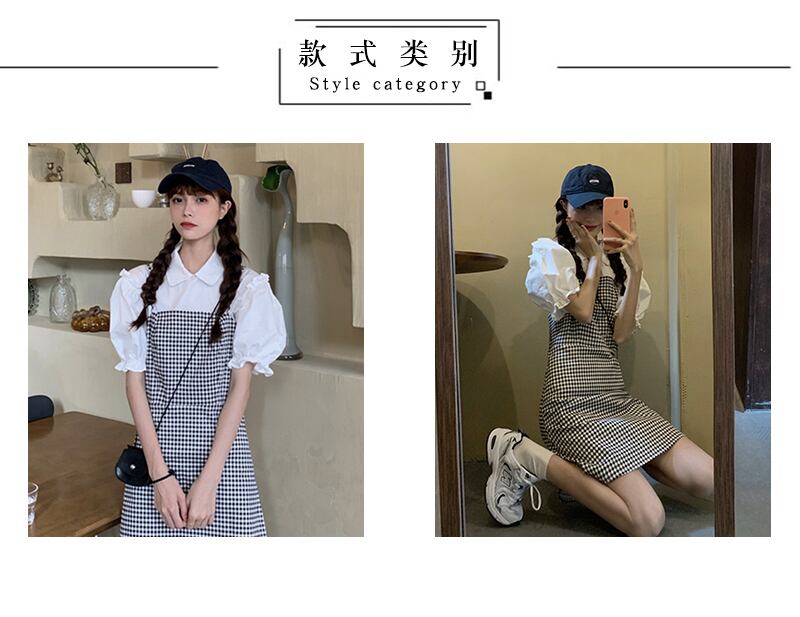 色:シャツ一枚,格子縞のスカートのシングルピース