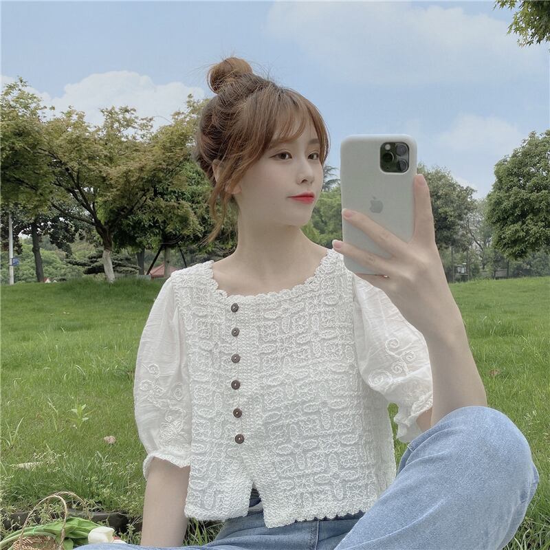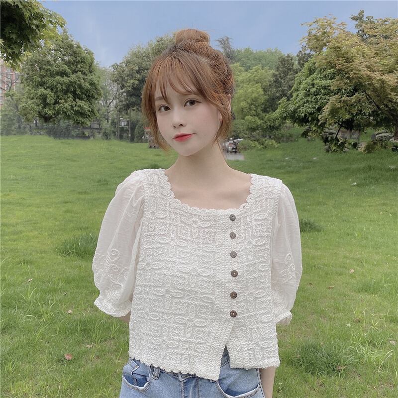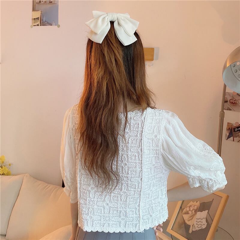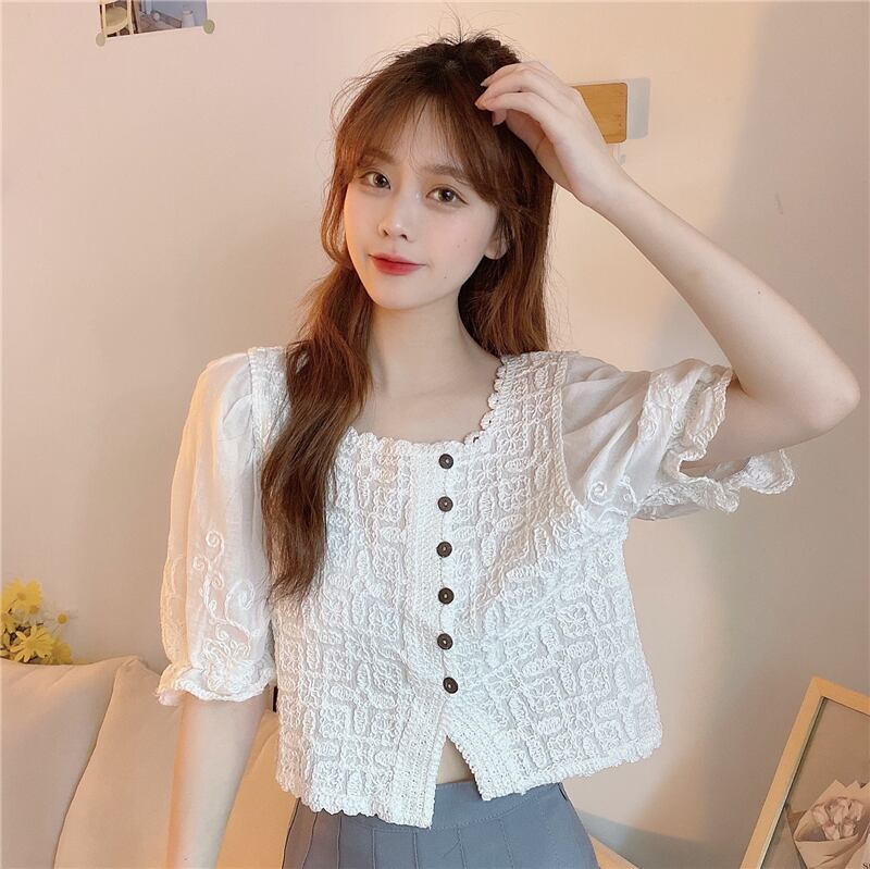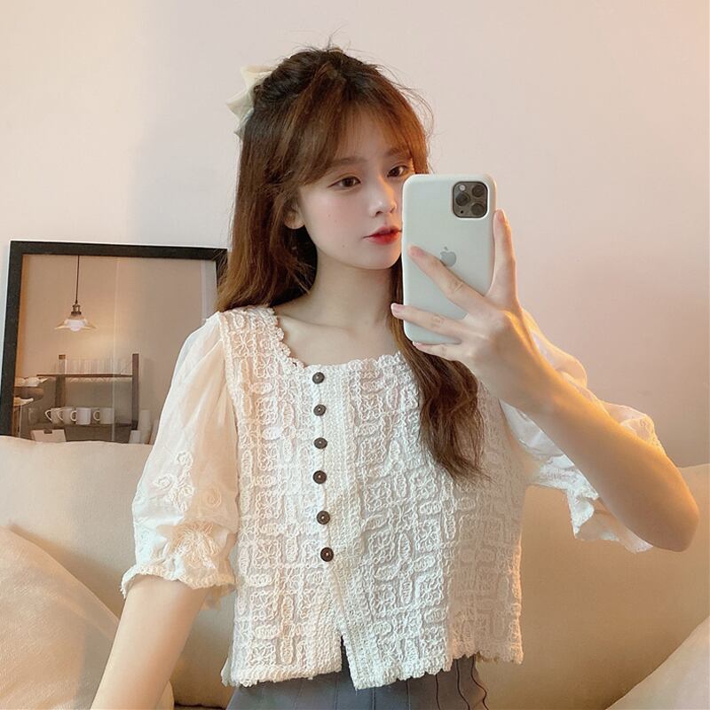 ショートブラウス レディースサマーレースシャツ 大人ガーリー スウィート キュート カジュアル 夏物 スクウェア misskkl87001523380