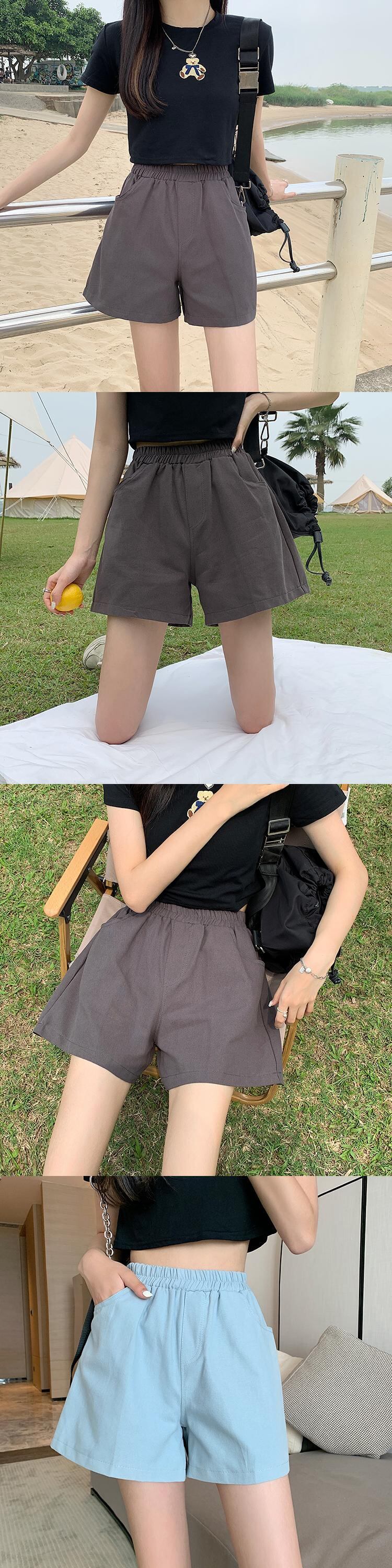 ショーツ サマーストレッチウェストハイウェストパンツ カジュアル エラスティック 伸縮 夏物 ブルマー misskkl24359219813