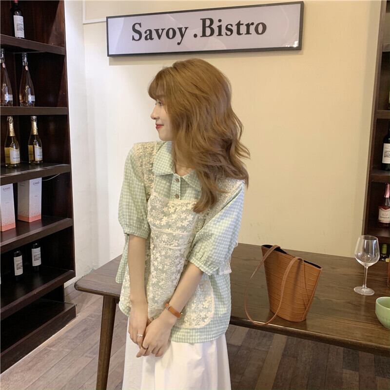 シャツ スリーブ格子柄サマー 大人ガーリー スウィート キュート カジュアル 夏物 misskkl20720080183