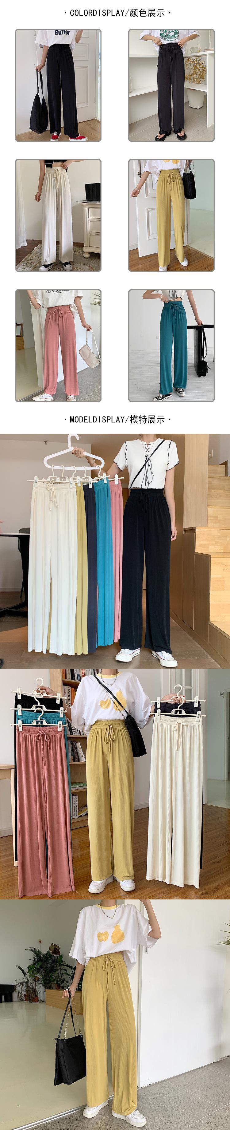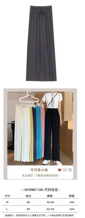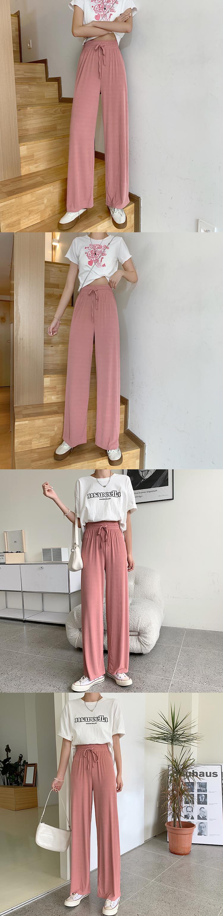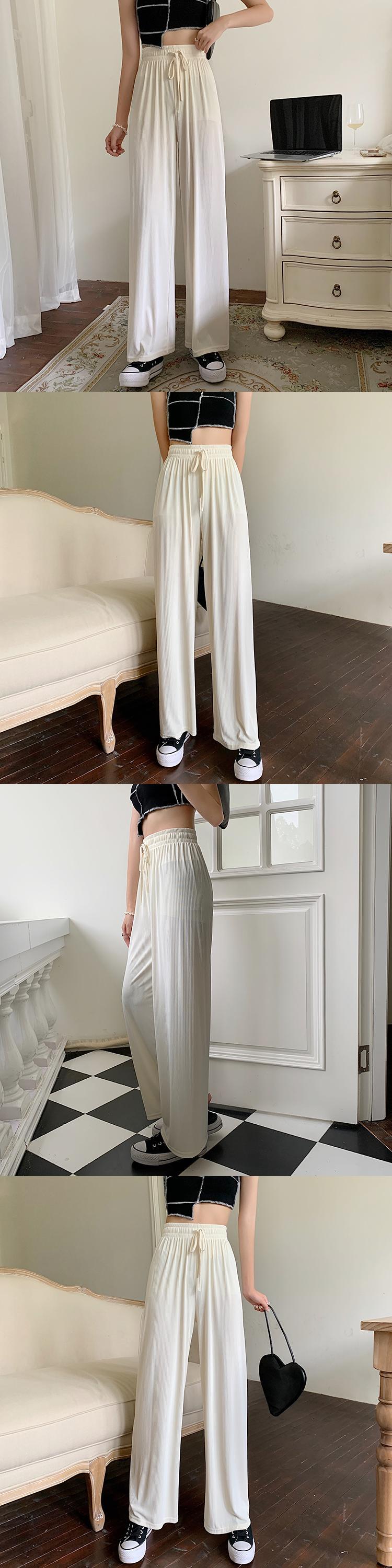 ブラックパンツ カジュアルサマー薄手ルーズハイウェストウェストロング 夏物 シルク misskkl98373475469