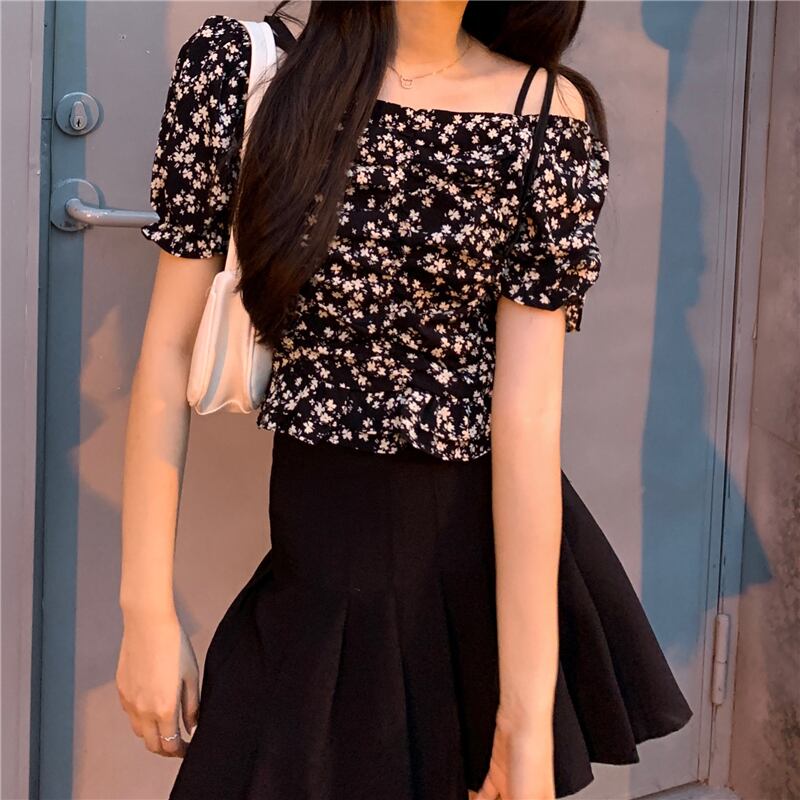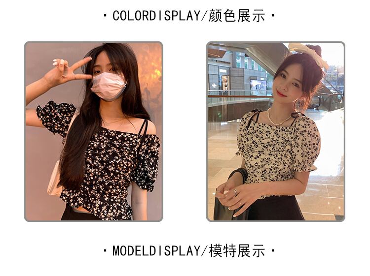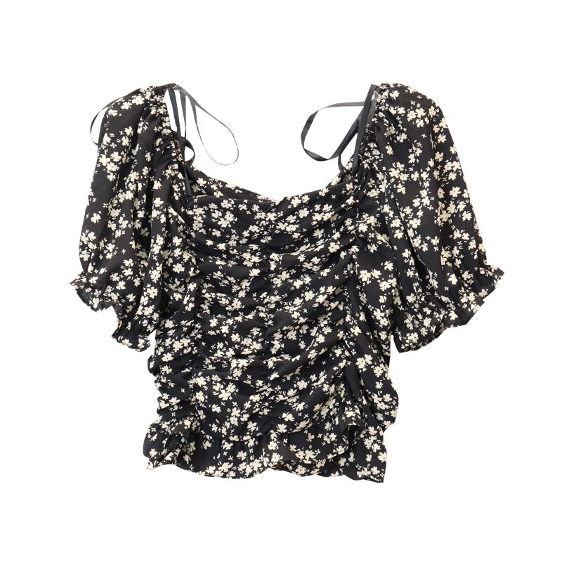 サマースタイルショートフローラルブラウス ストラップレスシフォンシャツ 夏物 花柄 misskkl74313866936