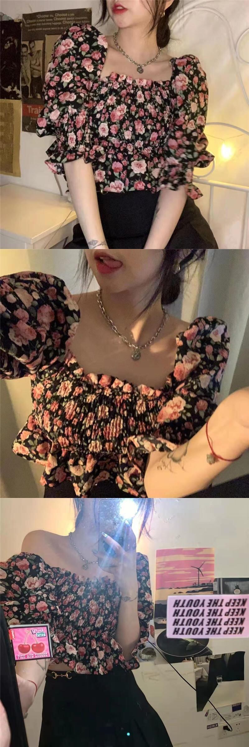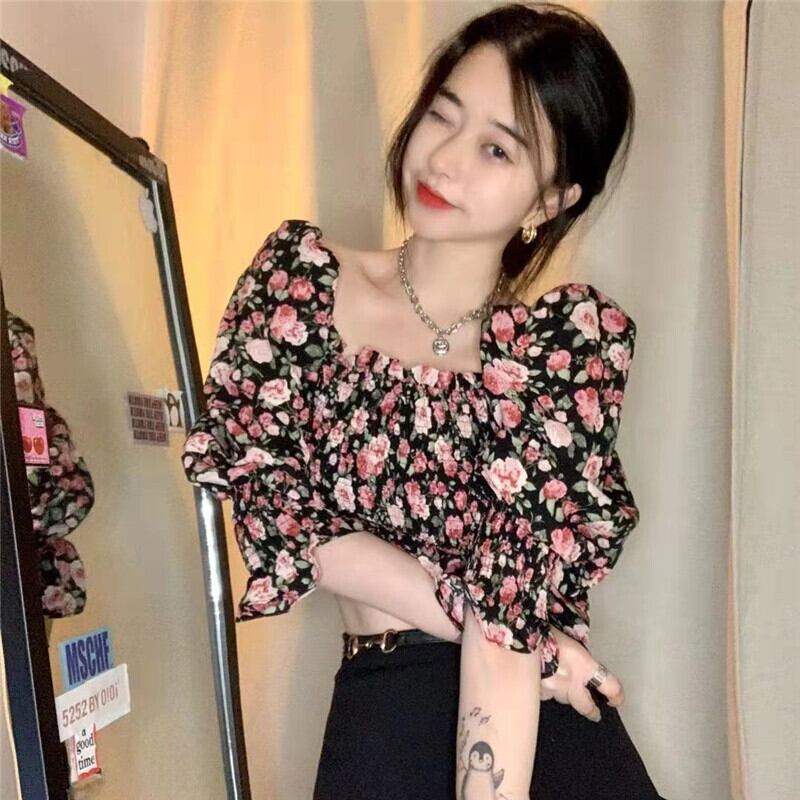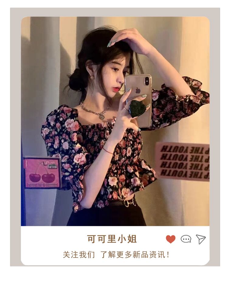 サマースタイルスリム薄手フローラルショート半袖スリーブシフォンシャツ トップス ハーフスリーブ 夏物 花柄 スクウェア misskkl12438026122