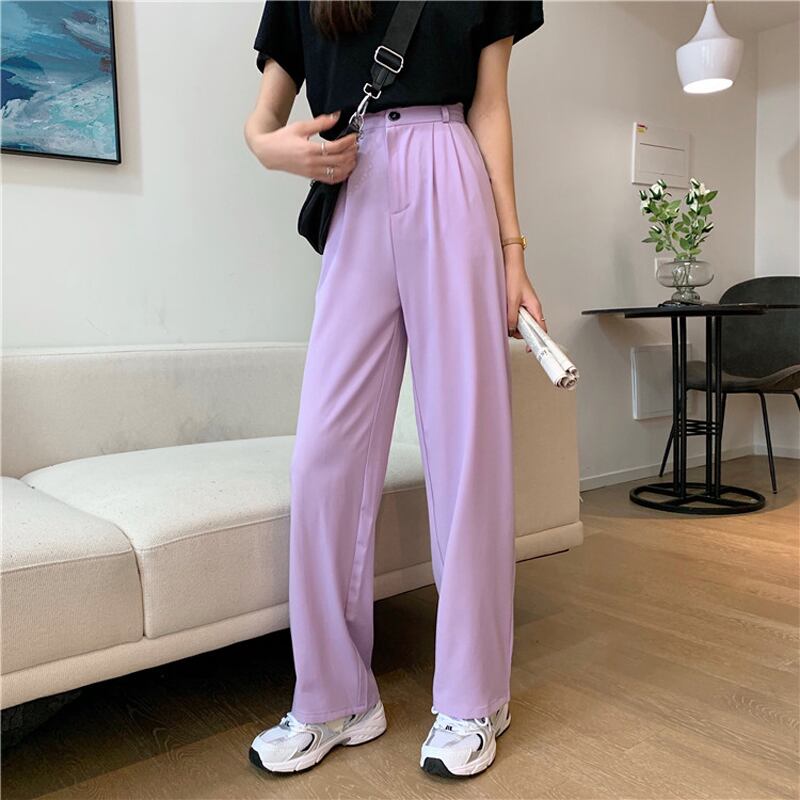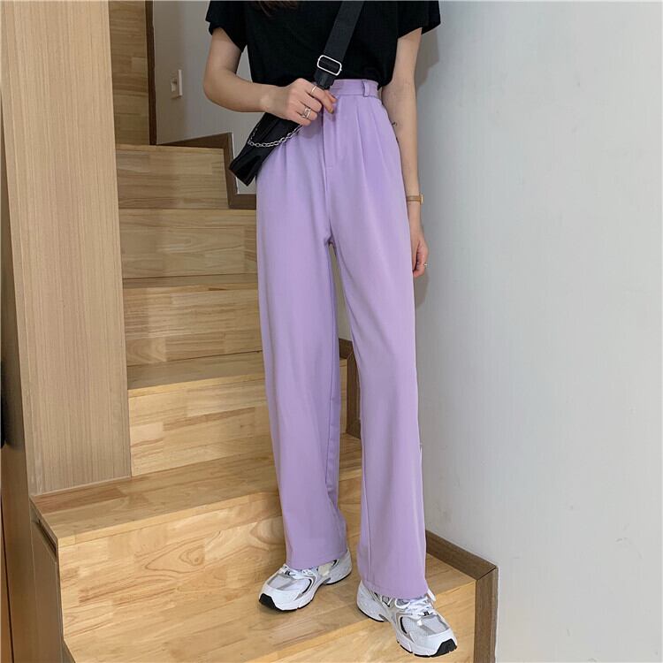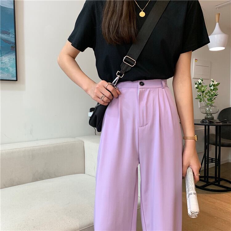 パンツ レディースサマールーズハイウェスト薄手 夏物 パープル misskkl78891484997