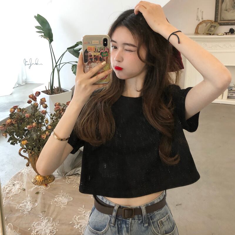 サマーホワイトスリムショートTシャツ トップス 夏物 misskkl24930421775