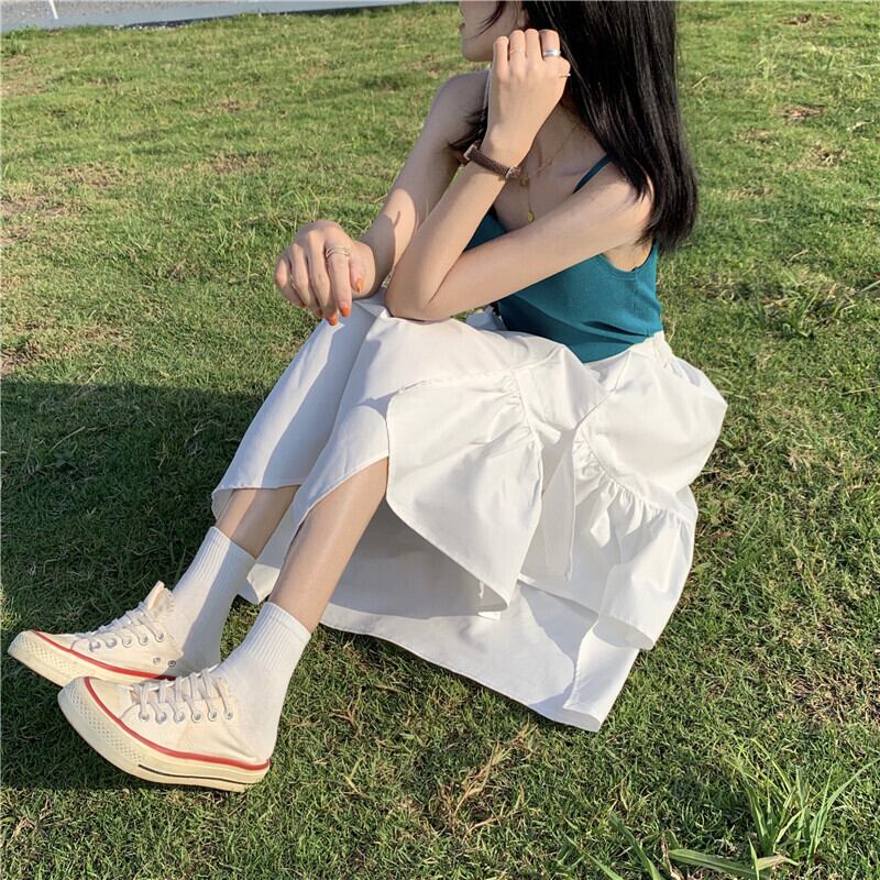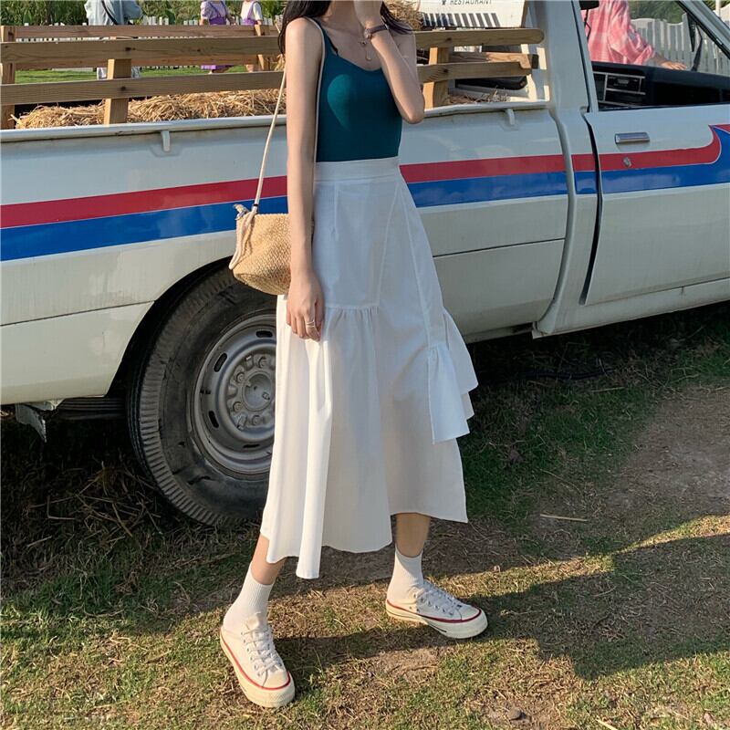 スカート サマーハイウェストウェストAラインホワイト 夏物 misskkl39793520275