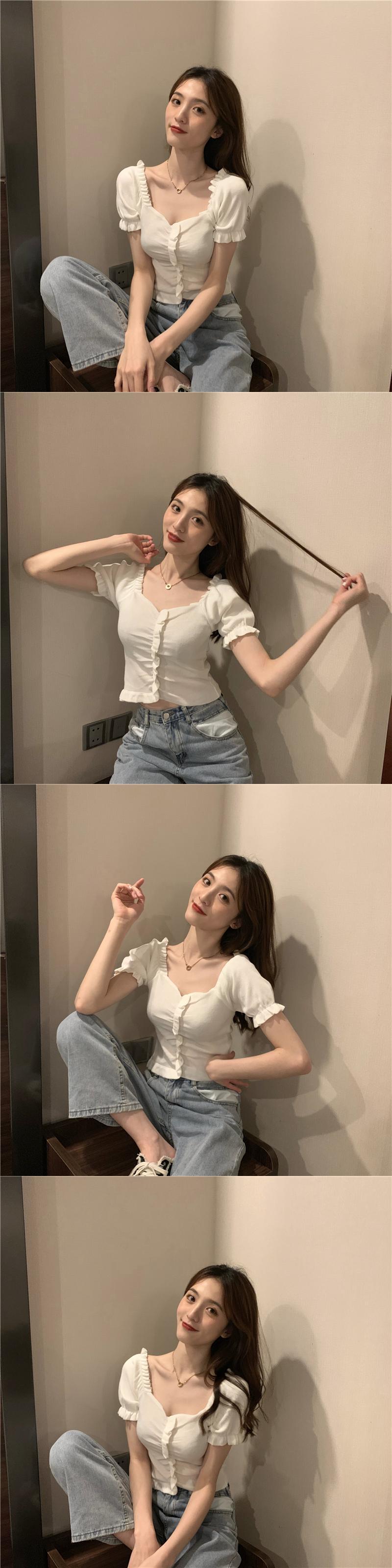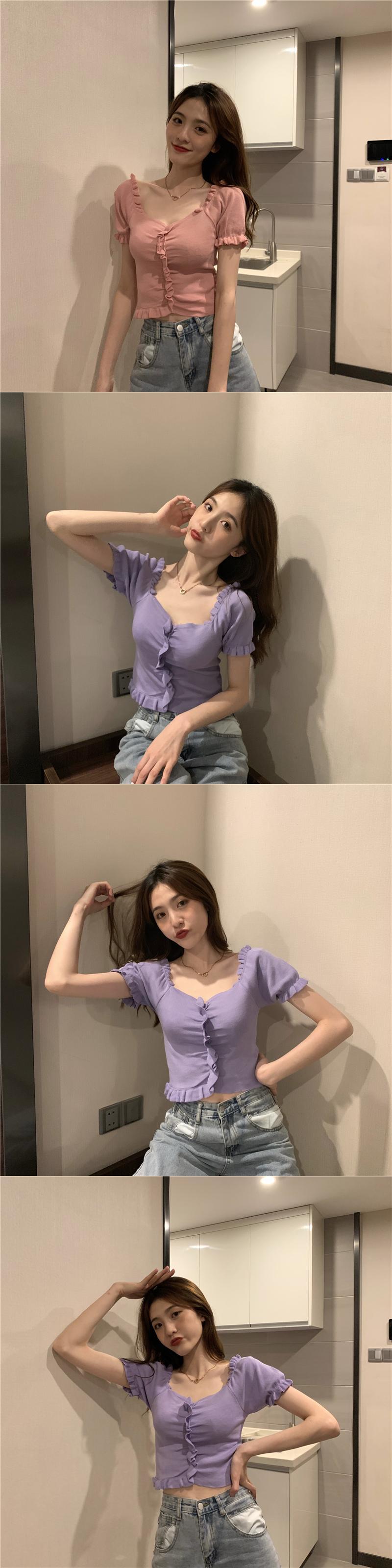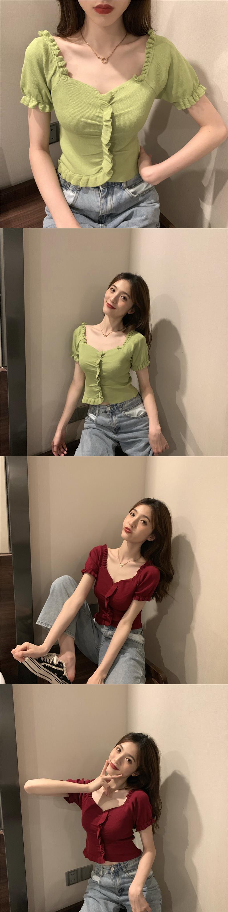 スタンダードボタンハイウェストウェストショートスリムセーター トップス レッド レトロ スプリング 春物 サマー 夏物 misskkl37535551022