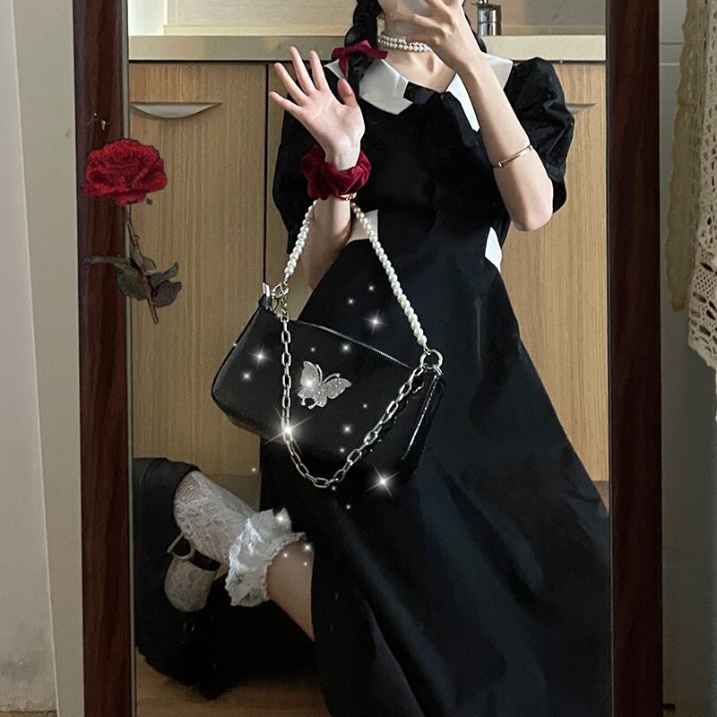 ブラックドレス サマースタンダードスカート レトロ 夏物 misskkl44044432915