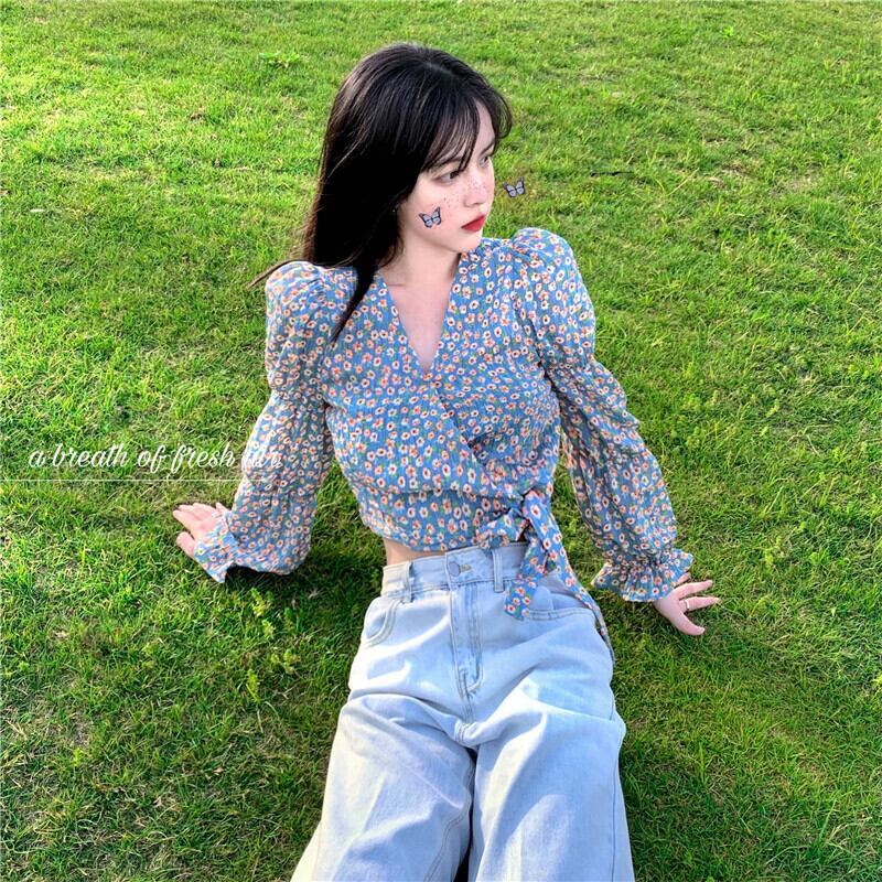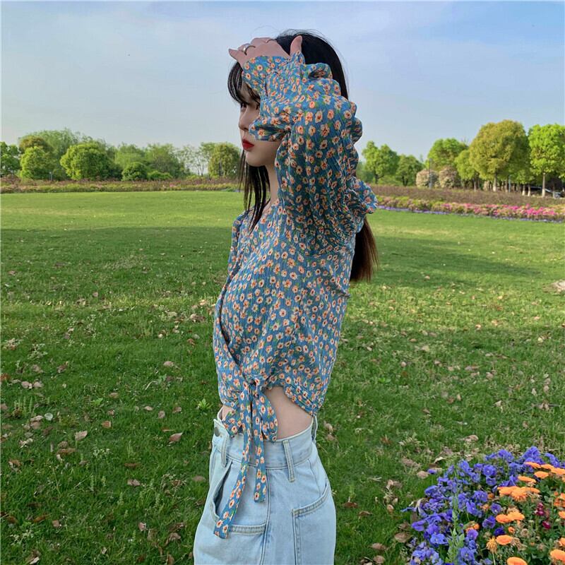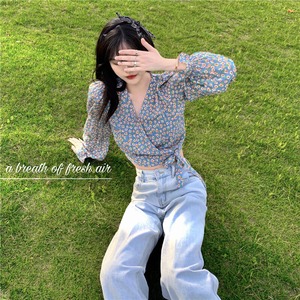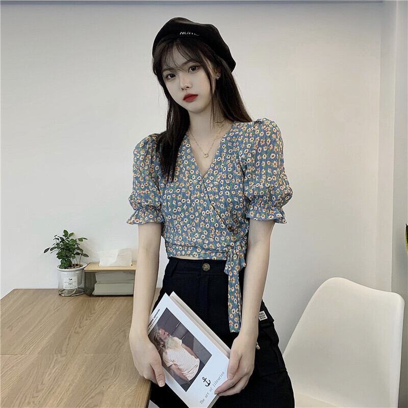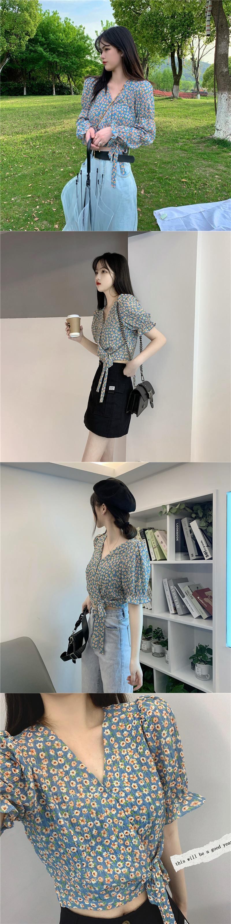 スリーブシフォンフローラルブラウス レディースサマーショートハイウェストシャツ 夏物 花柄 misskkl75522427811