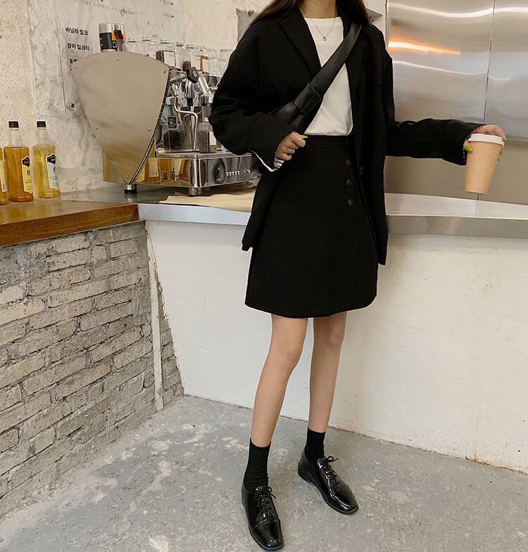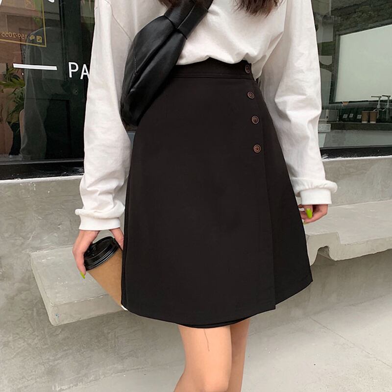 スプリングハイウェストウェストAラインスカート ブラック 春物 misskkl54048630801