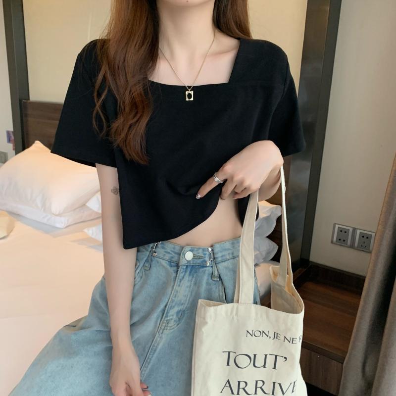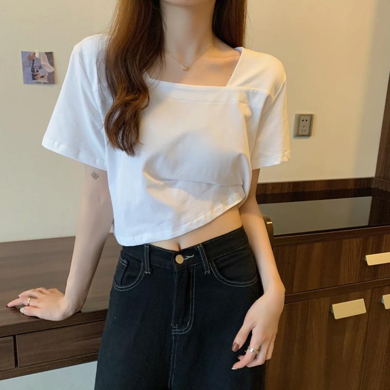 ホワイトTシャツ ショートスタイルハイウェストウェストトップス 大人ガーリー スウィート キュート カジュアル スクウェア misskkl22484900864