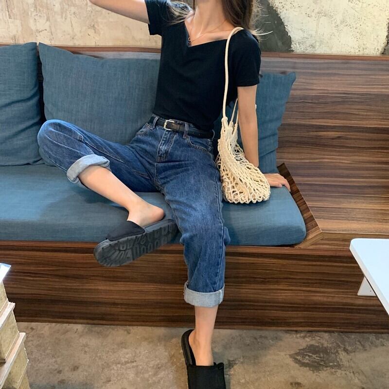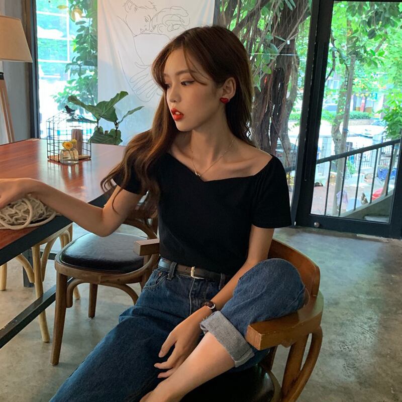 サマースリム薄手ショートブラックTシャツ トップス 夏物 misskkl56613323195