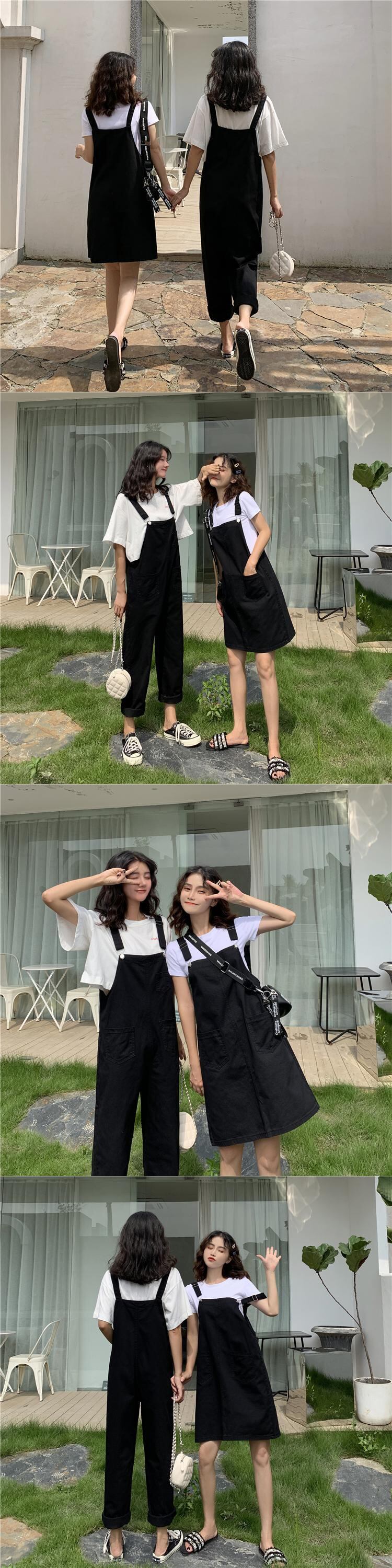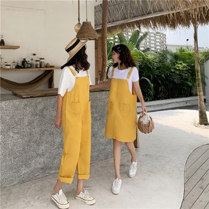 色:黄色のオーバーオール,黒いオーバーオール,ブラックストラップドレス,黄色のストラップドレス