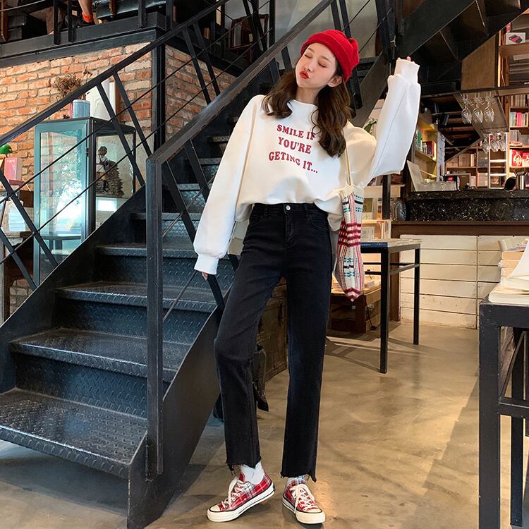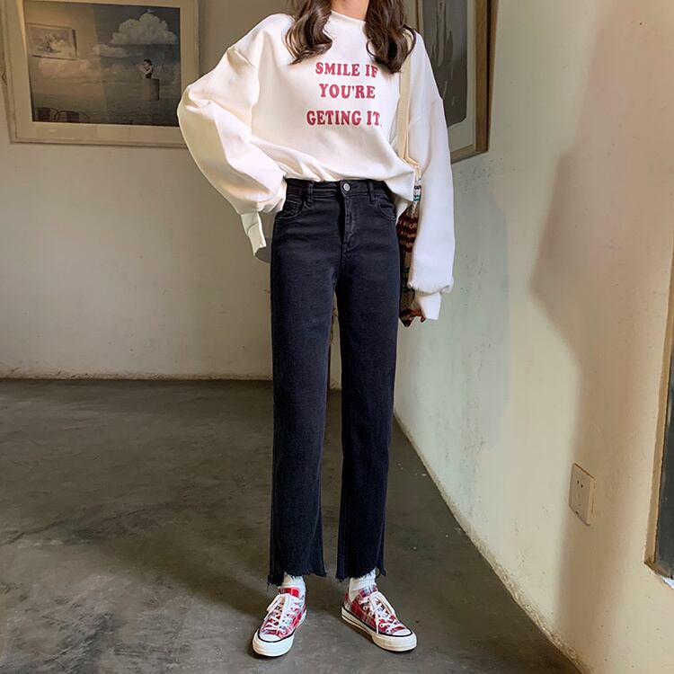 スプリングオータムスタンダードスタイルハイウェストウェストブラックスリムジーンズ レディース レトロ 春物 秋物 misskkl76458713784