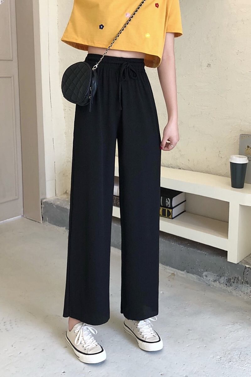 スプリングハイウェスト薄手パンツ ブラックカジュアル 春物 misskkl91803077221