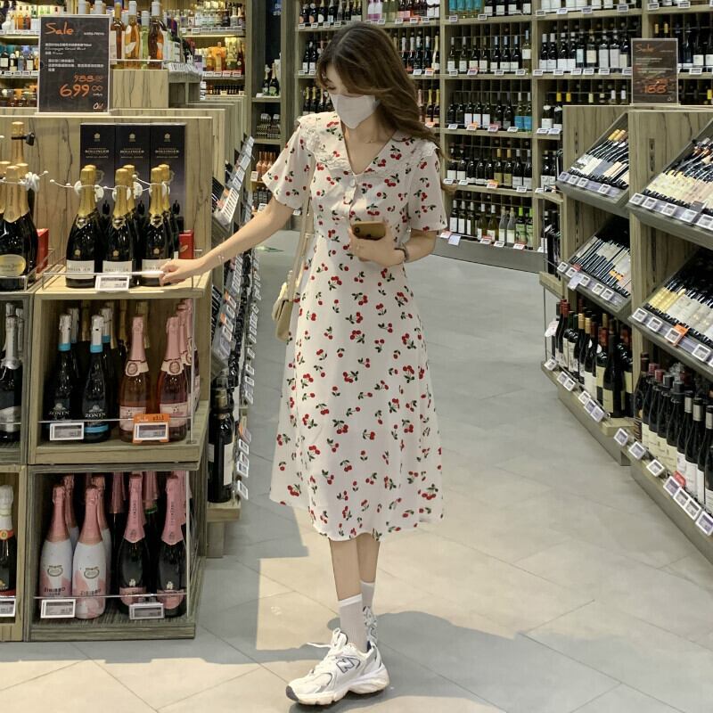 ドレス フローラルレースカラーサマースタイル半袖スリーブスカート ショート ハーフスリーブ 大人ガーリー スウィート キュート カジュアル 夏物 花柄 misskkl19095208965