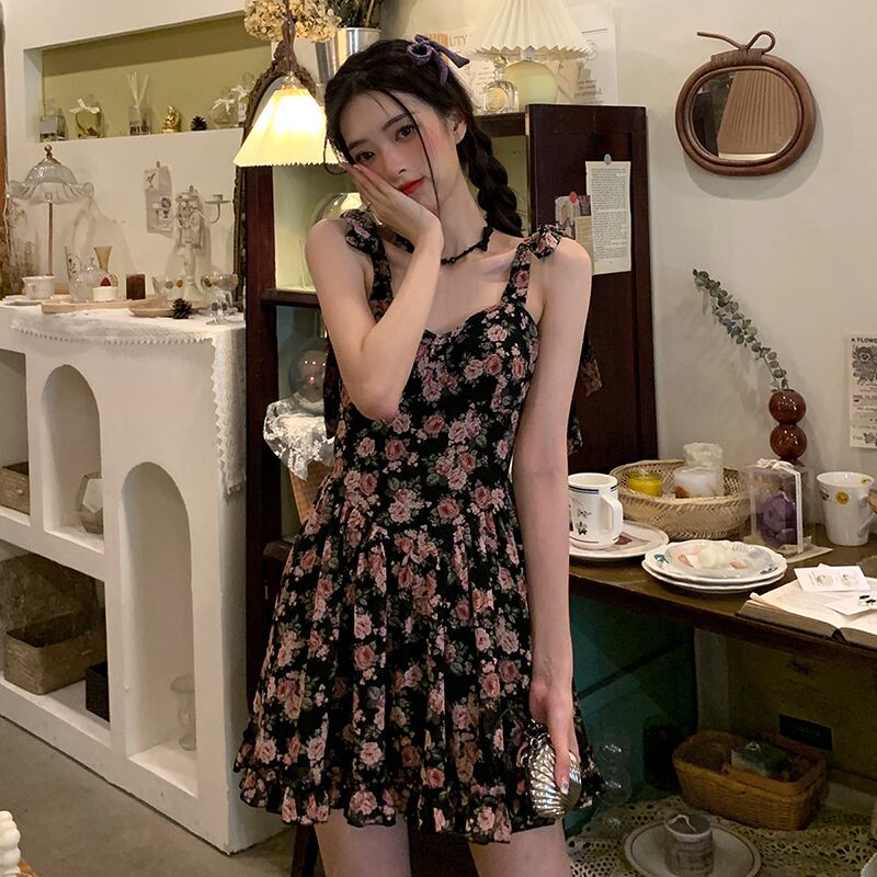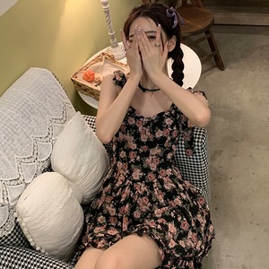 サマーハイウェスト薄手フローラルドレス 夏物 花柄 misskkl13287310622