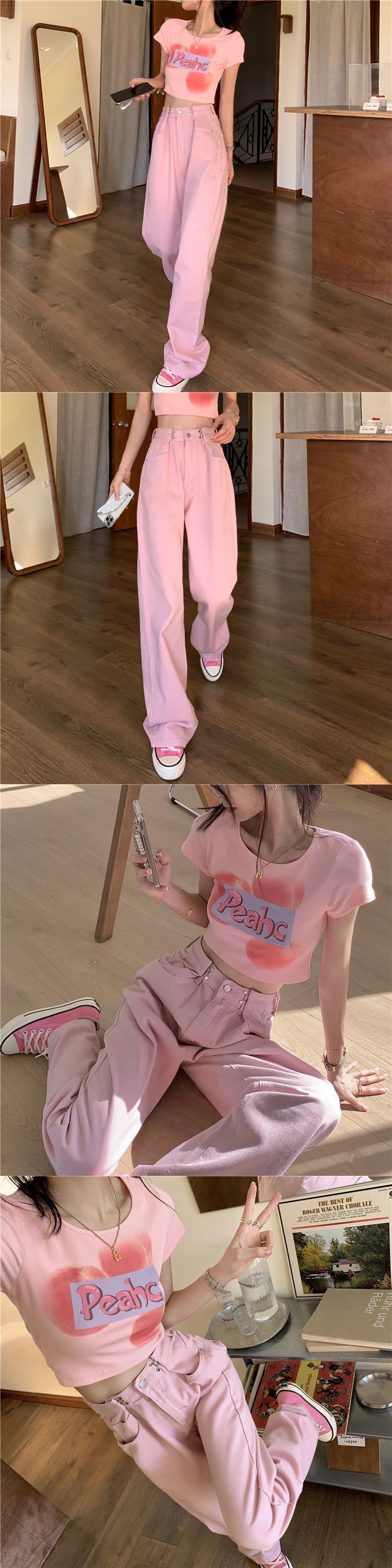 トップス サマースリムプリントショートボタンTシャツ ピンク 大人ガーリー スウィート キュート カジュアル 夏物 misskkl88860640163