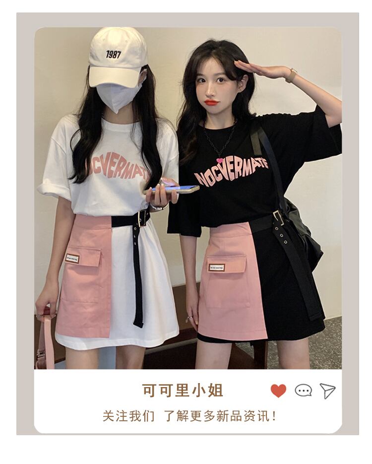 色:黒のTシャツスカート,白いTシャツのスカート,ピンクのスカート