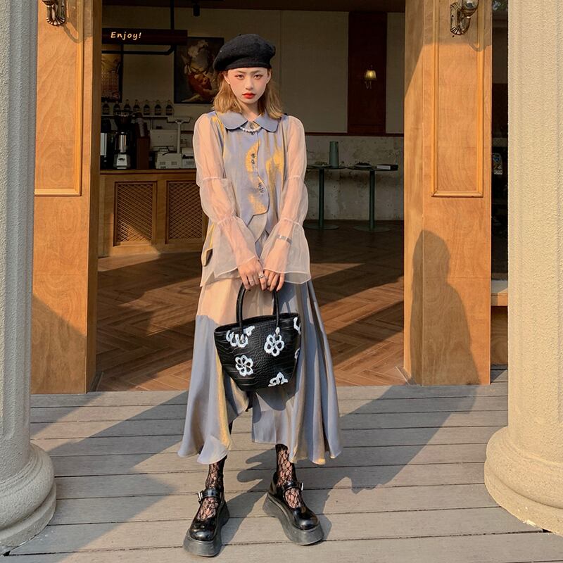 スタイルサマースタンダードメッシュシャツ スカート レトロ 夏物 misskkl43113519773