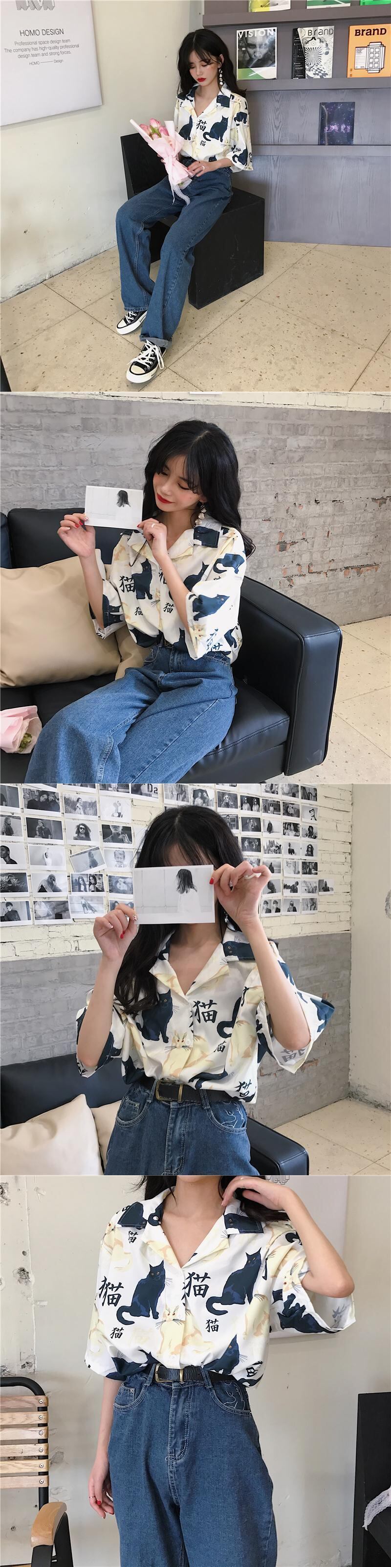 シャツ プリント柄サマー薄手ルーズスタイルスタンダード レトロ 夏物 misskkl51745639633