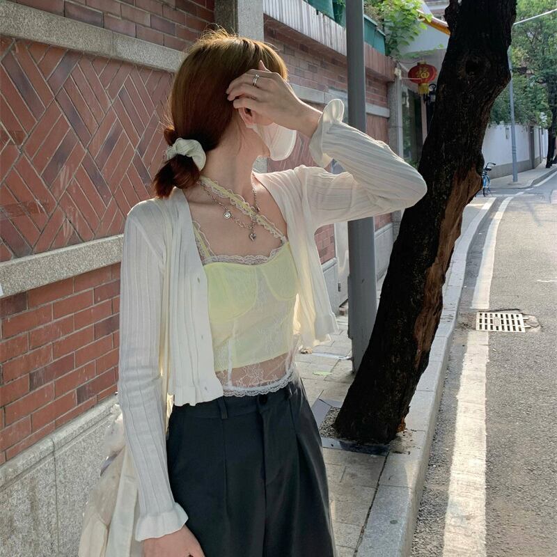 サマーセーター 薄手カーディガンショートホワイトコート ジャケット レディース ロング 夏物 misskkl89435479688