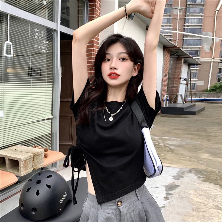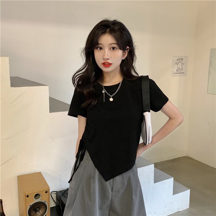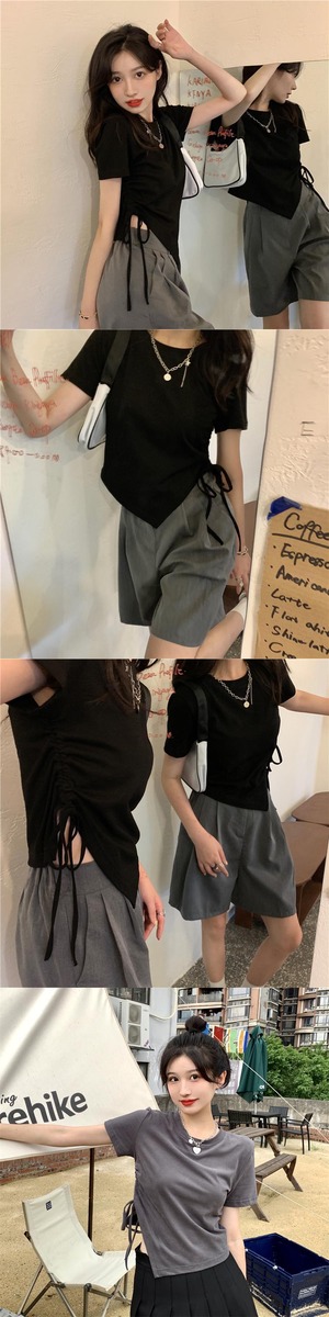 ギャザーTシャツ サマーショート薄手 大人ガーリー スウィート キュート カジュアル 夏物 misskkl46156619159