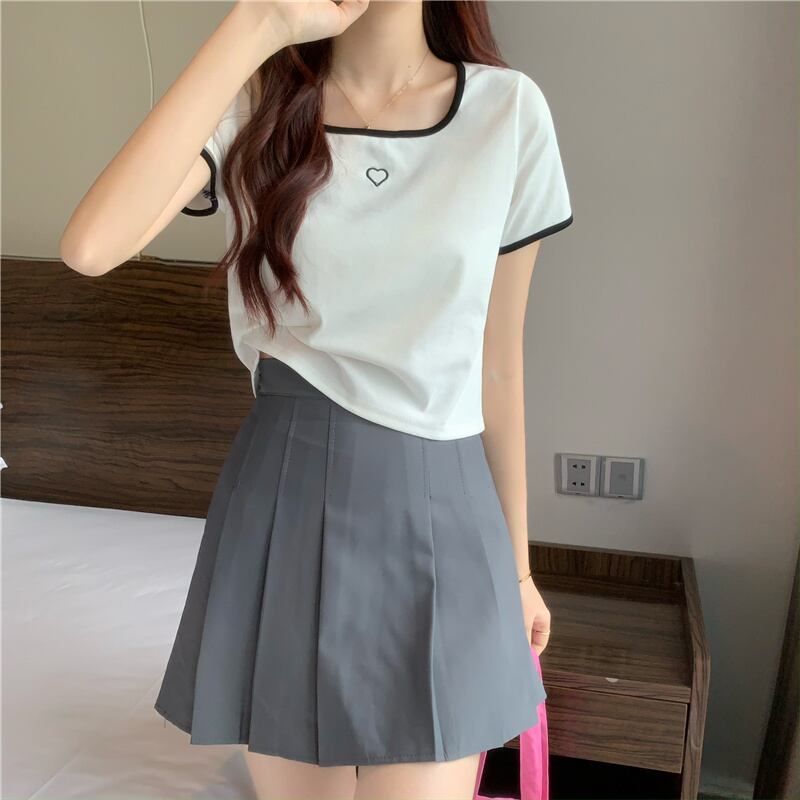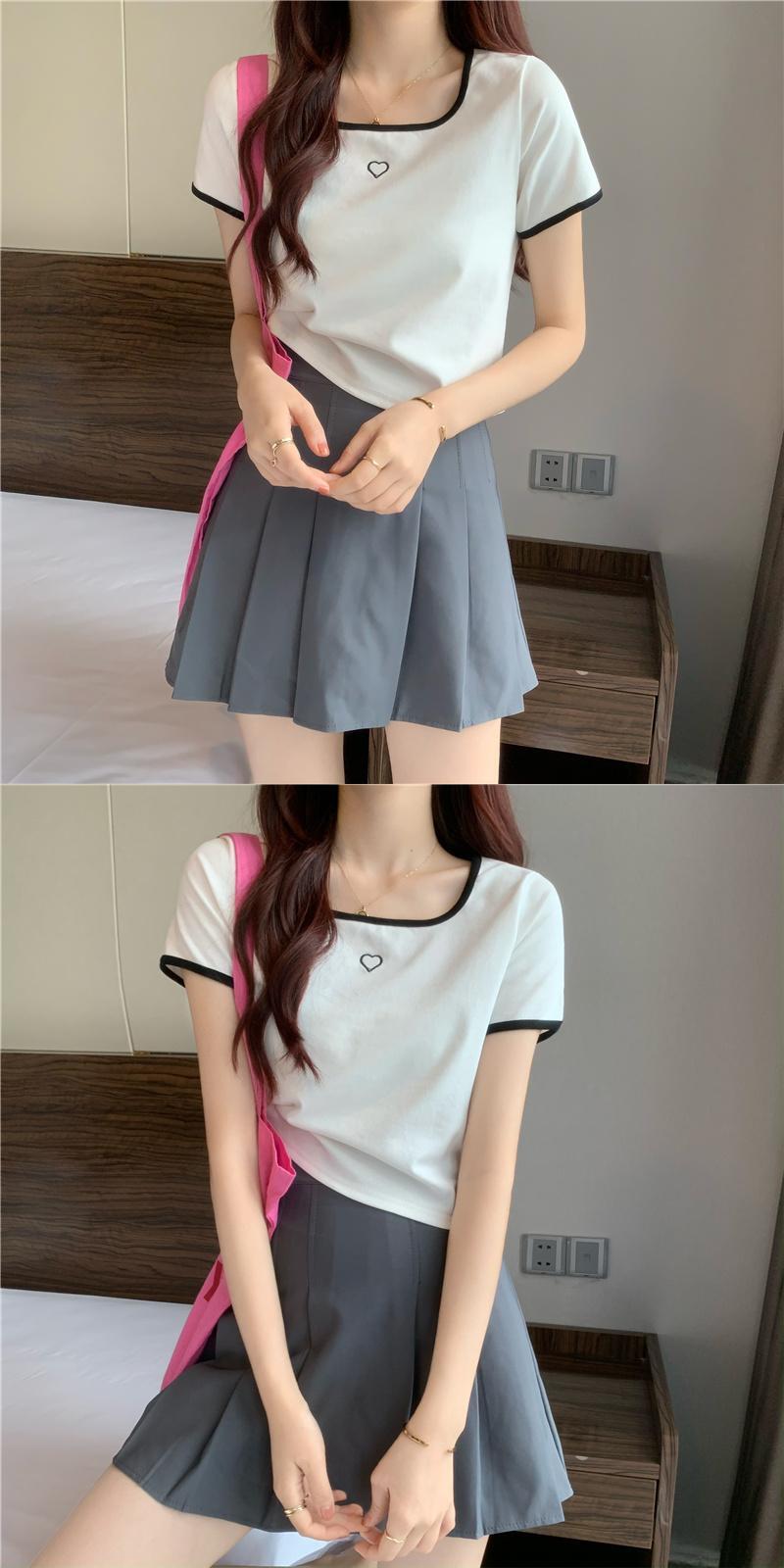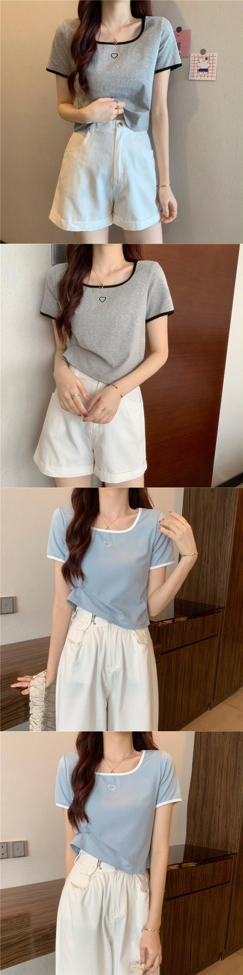 サマーショートTシャツ スリム薄手トップス 刺繍 夏物 スクウェア misskkl28575914837