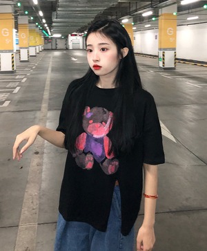 色:ブラックベアスプリットTシャツ,白くまスプリットTシャツ