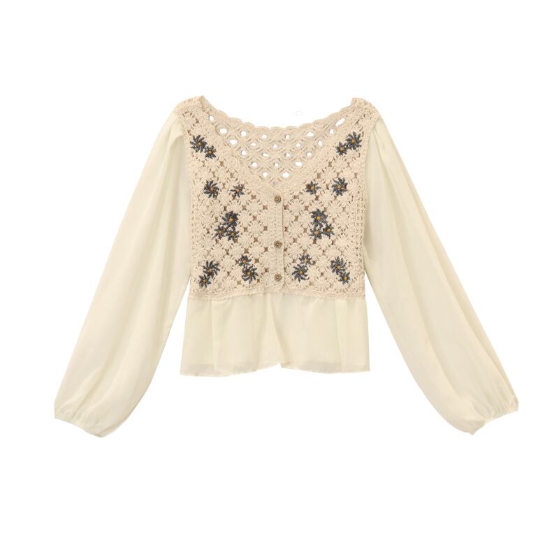 スリーブサマーVネックFlowerデザイン 刺繍シャツ ロング ランタンスリーブ 大人ガーリー スウィート キュート カジュアル 夏物 フラワーデザイン misskkl20794176192