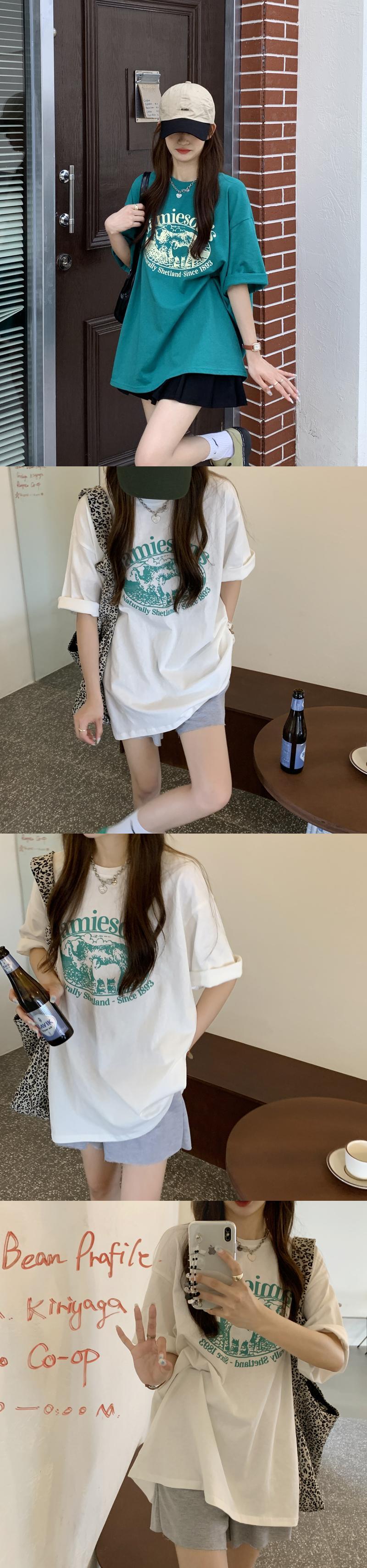 Tシャツ サマールーズ薄手スタンダードブルートップス レトロ 夏物 misskkl44175554319
