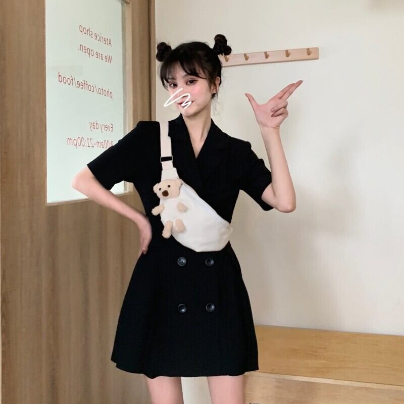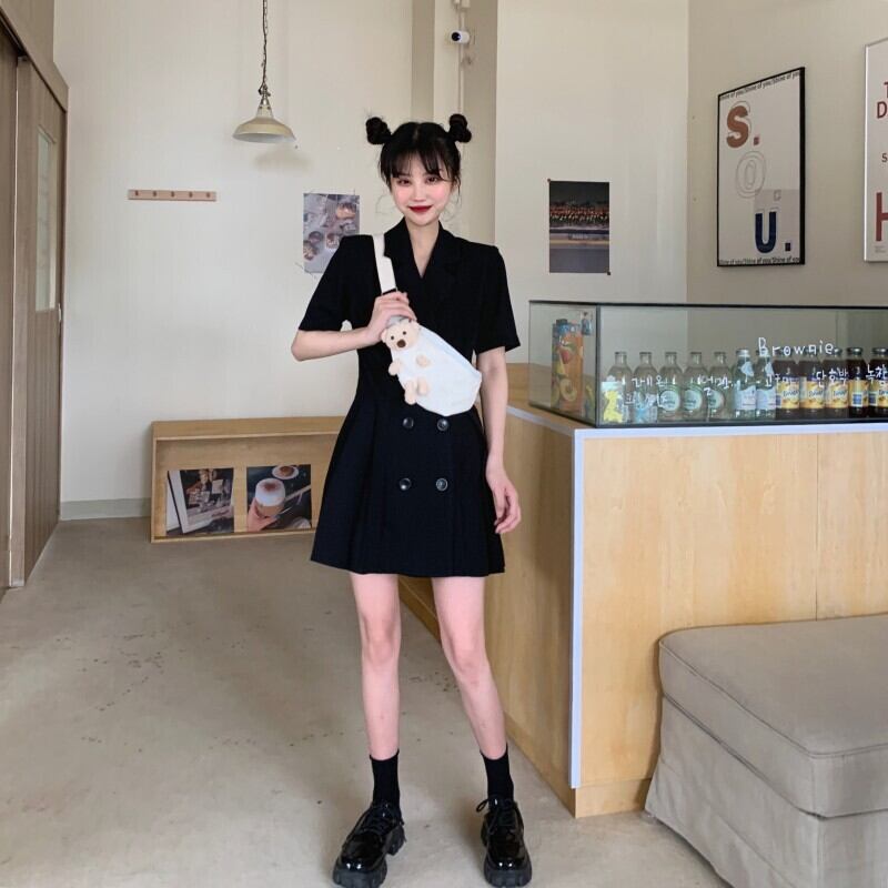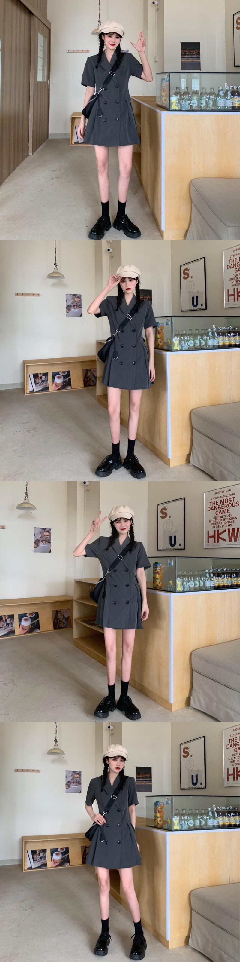 サマースタイルダブルブレストウェスト薄手Aラインカラードレス 夏物 misskkl36444934701
