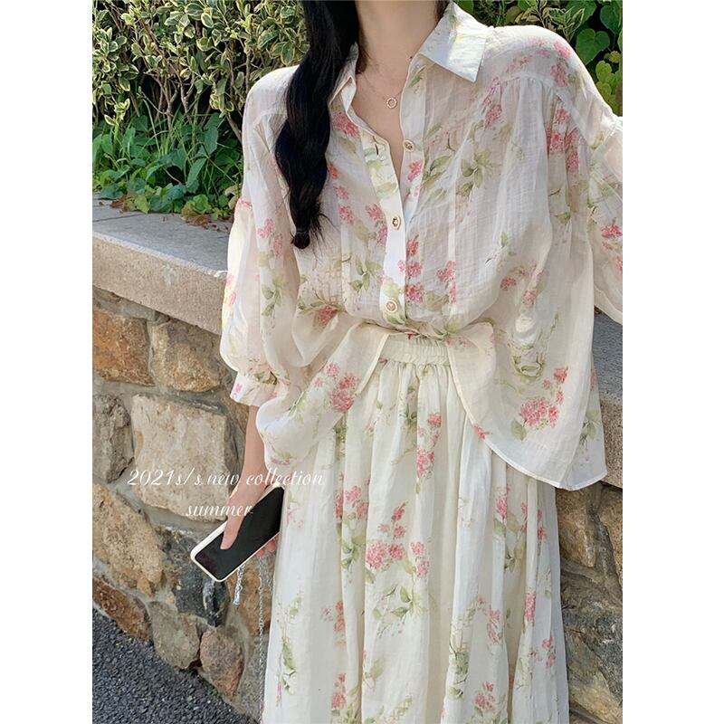 シャツ スカート サマーフローラル薄手スリーブレディース 夏物 花柄 misskkl7882906843