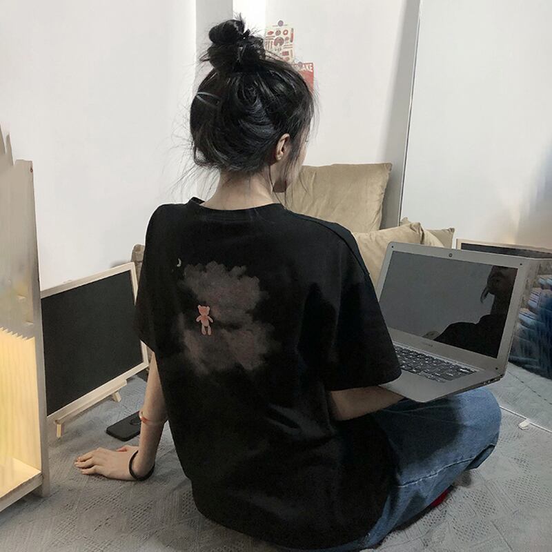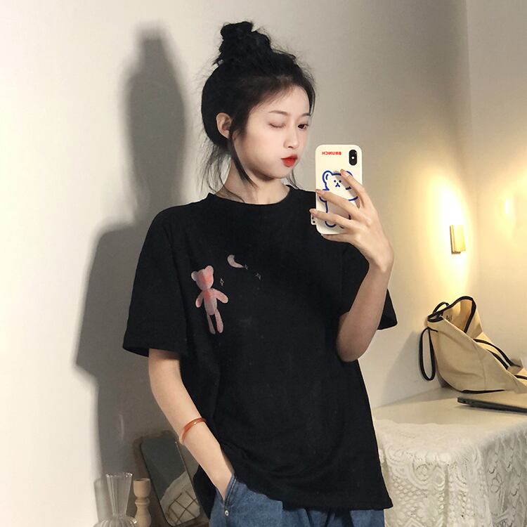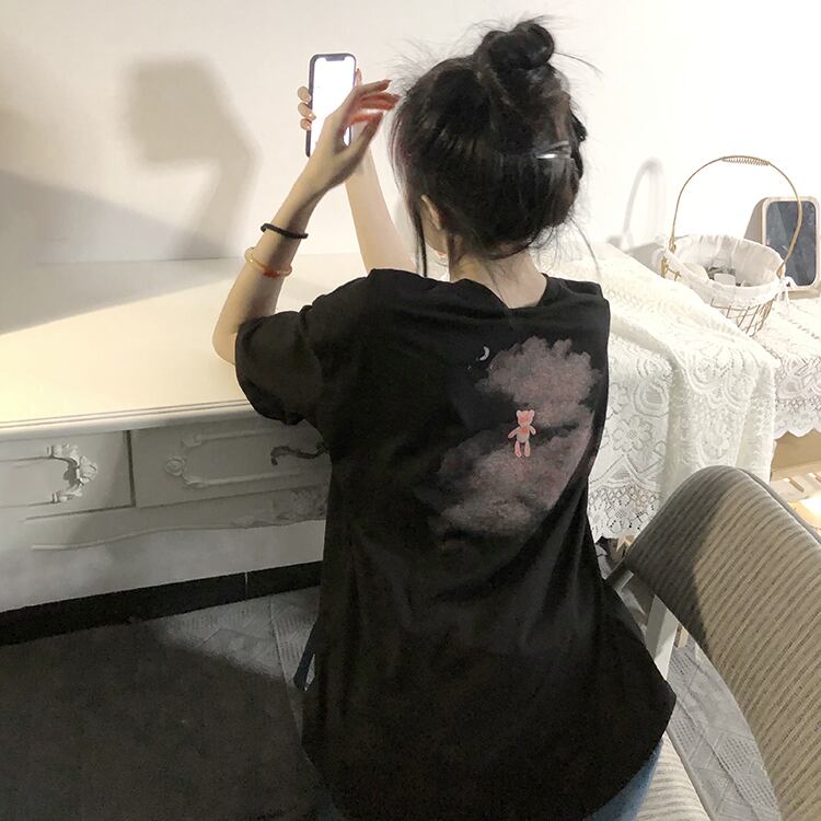 サマープリント柄ルーズスタイルTシャツ トップス 大きめサイズ 夏物 misskkl44676347588