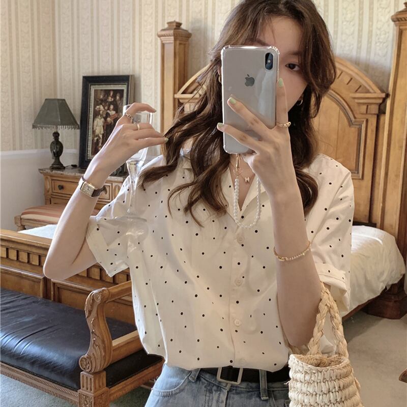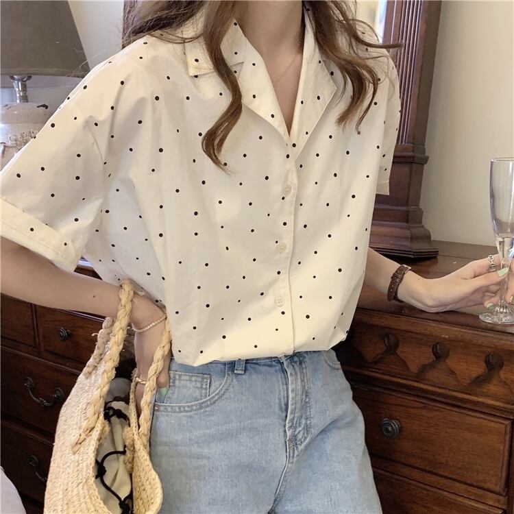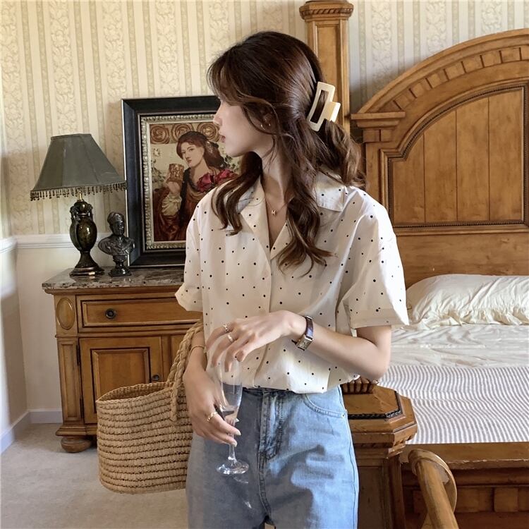 サマーカラー水玉トップス シャツ レディース 夏物 misskkl68681857507