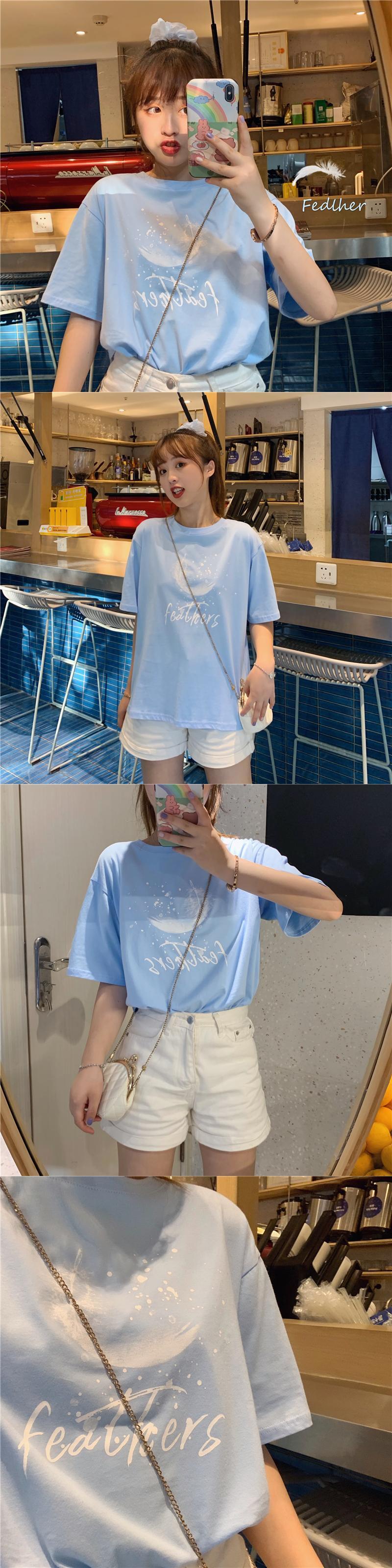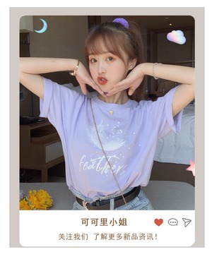 トップス レディースサマープリントルーズTシャツ 夏物 パープル misskkl59134746711