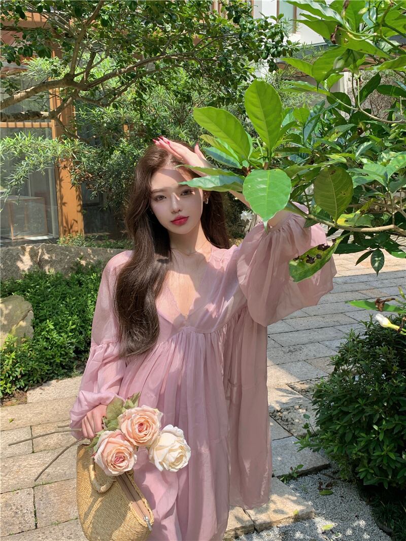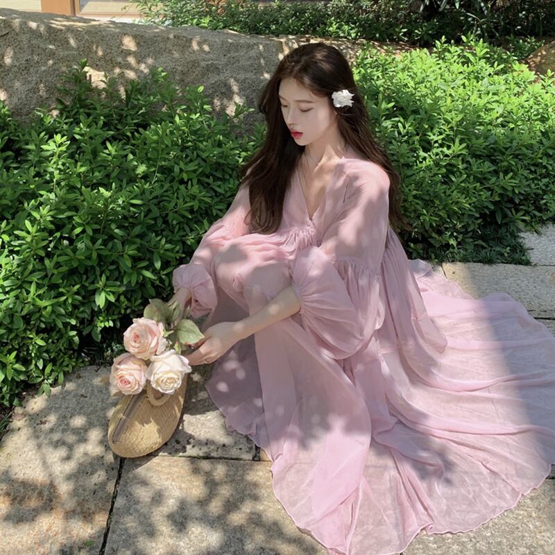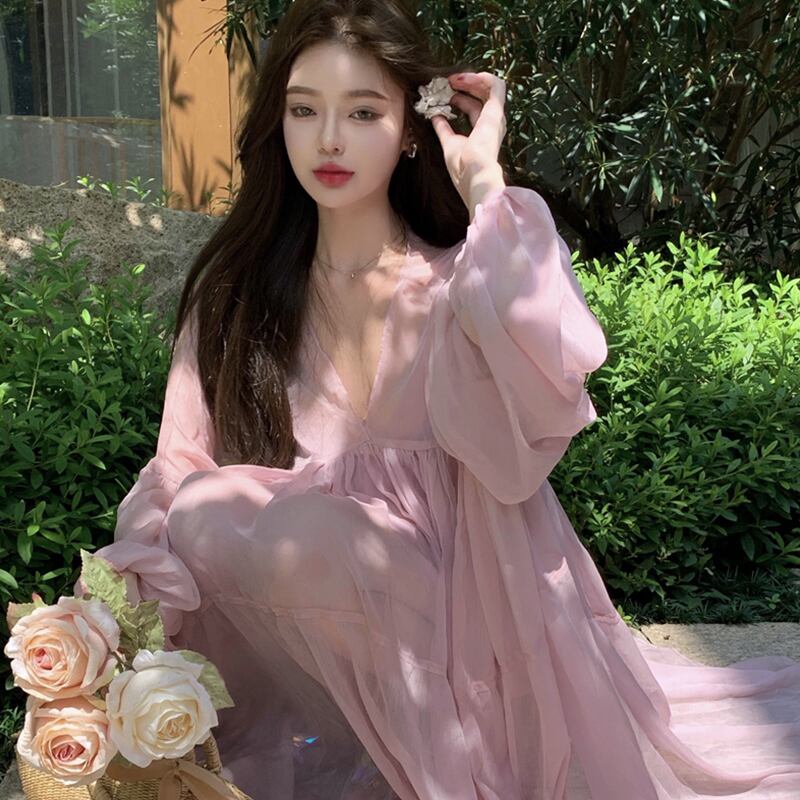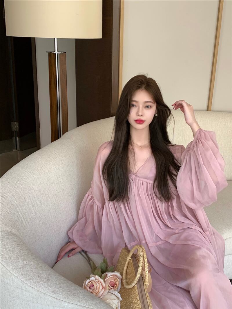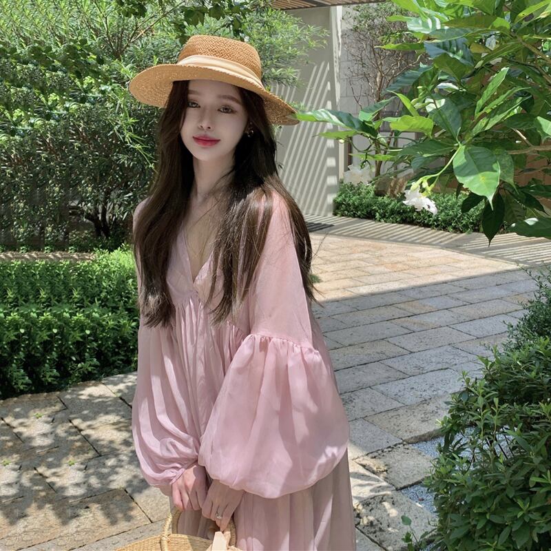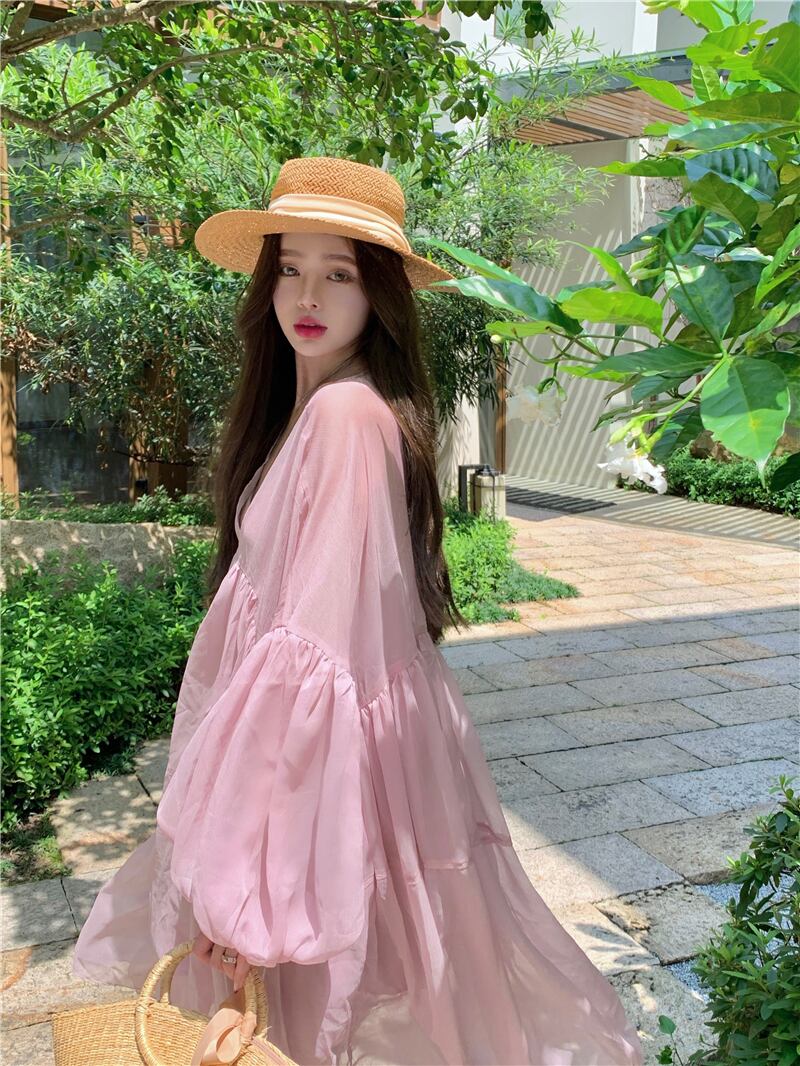 ドレス サマースリーブVネックスカート ロング ランタンスリーブ 夏物 misskkl99722573998