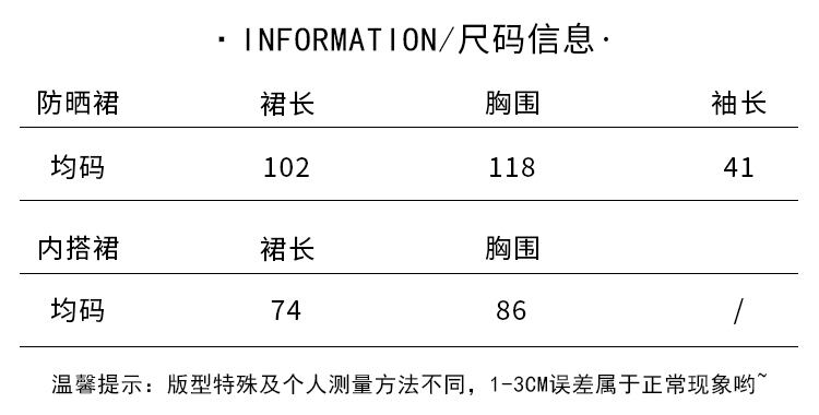 サイズ:インナーストラップスカート,長袖日焼け止めスカート