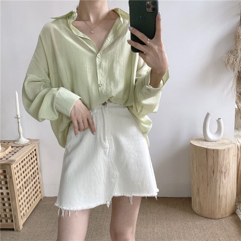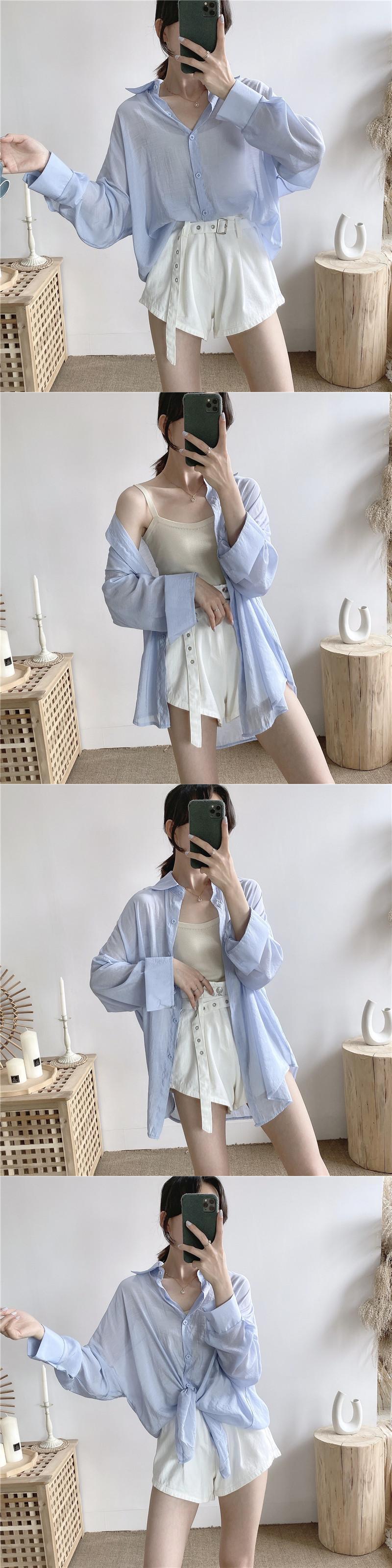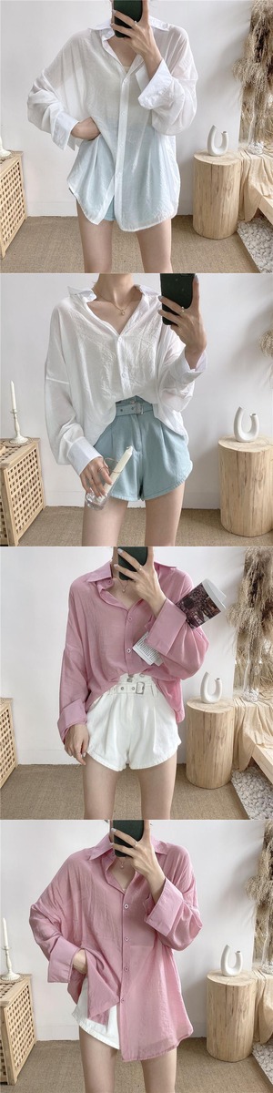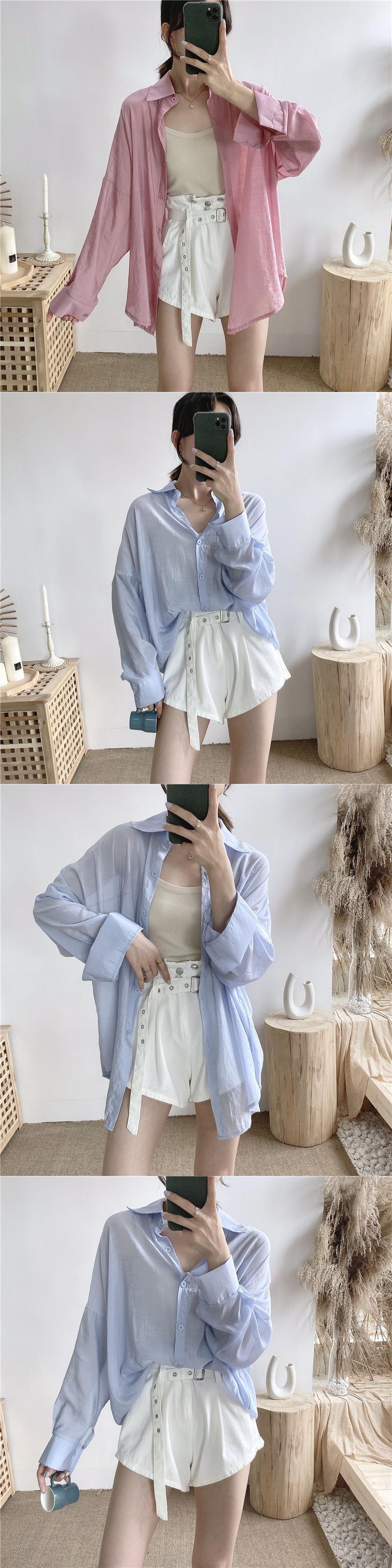 スプリングオータムルーズカラー薄手シャツ トップス レディース ロング 春物 秋物 misskkl52551144894