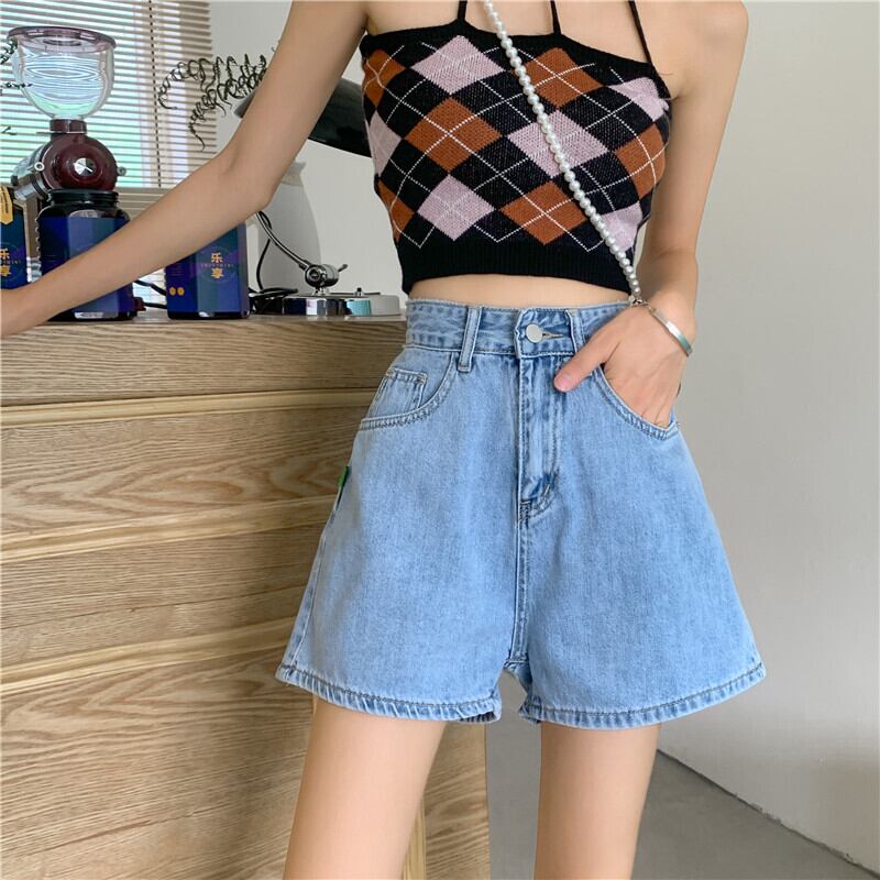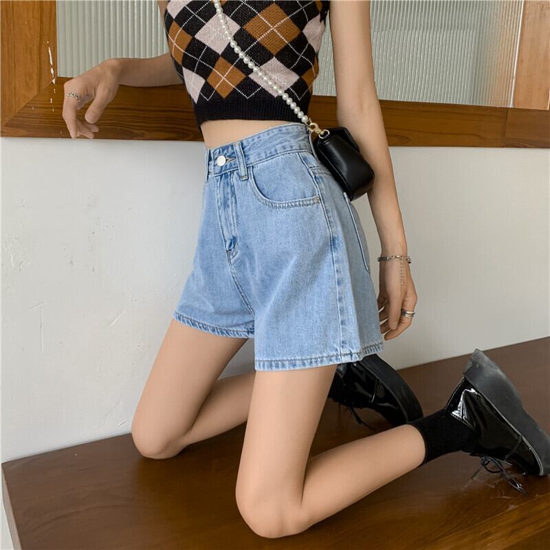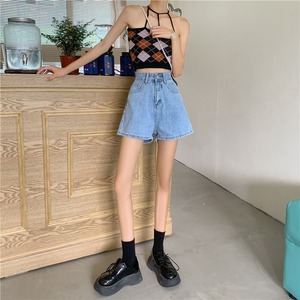 ショーツ サマージーンズ ハイウェストウェストルーズパンツ Aライン レッド 夏物 ブルマー misskkl4571921282
