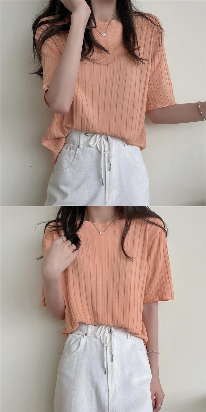 サマースタイル薄手カラーショートスリムセーター トップス 夏物 misskkl43740482941