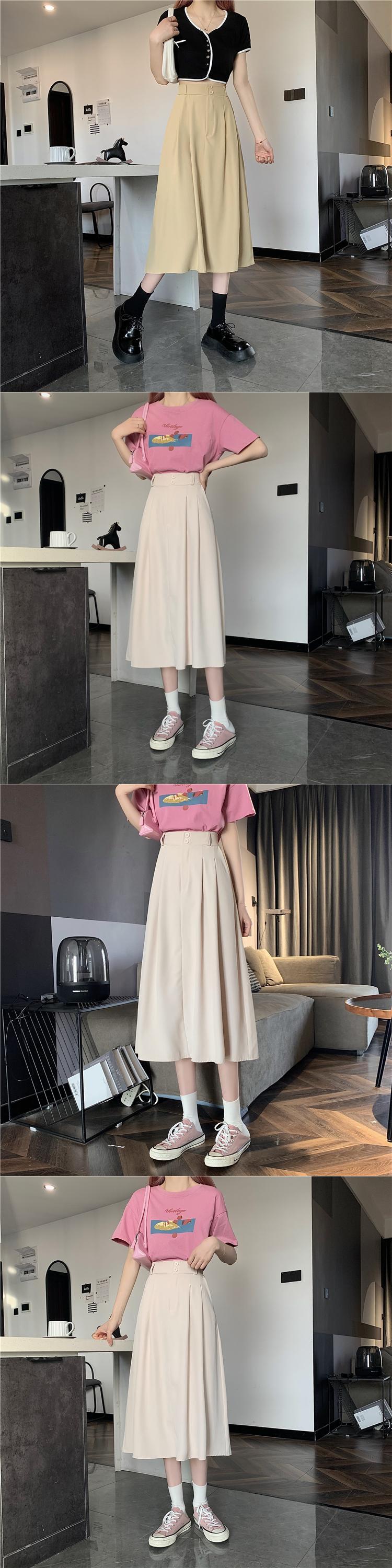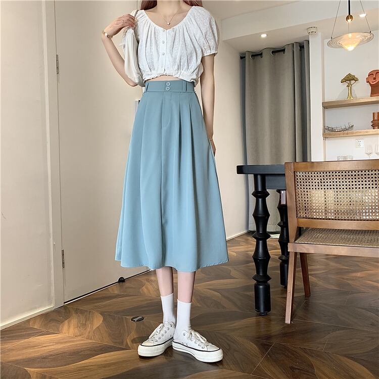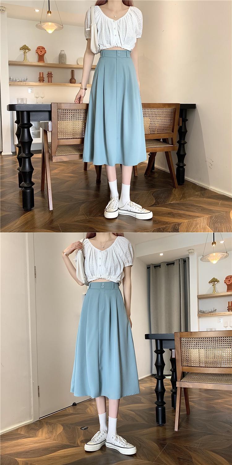ブルースカート サマーハイウェストウェストソリッド カラーAライン 夏物 ソリッドカラー misskkl99572372727