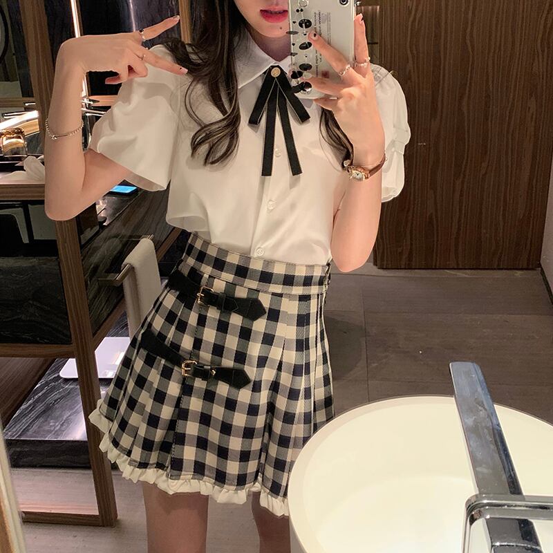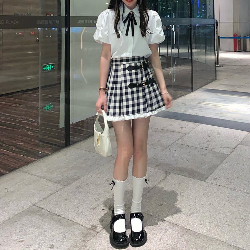 サマースタイルハイウェスト薄手格子柄スカート 大人ガーリー スウィート キュート カジュアル 夏物 misskkl18660842868
