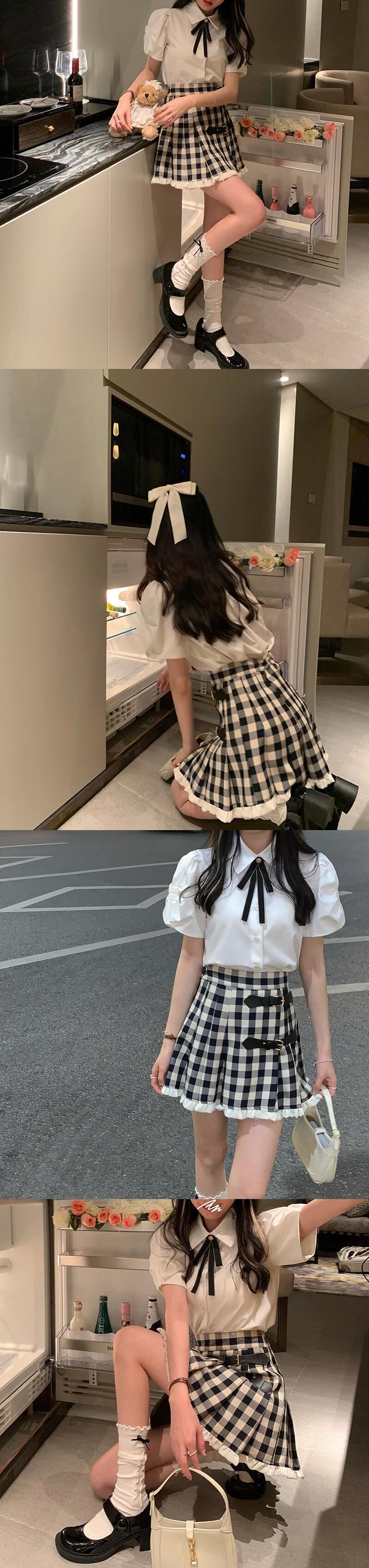 色:シャツ+蝶ネクタイ,チェック柄スカート