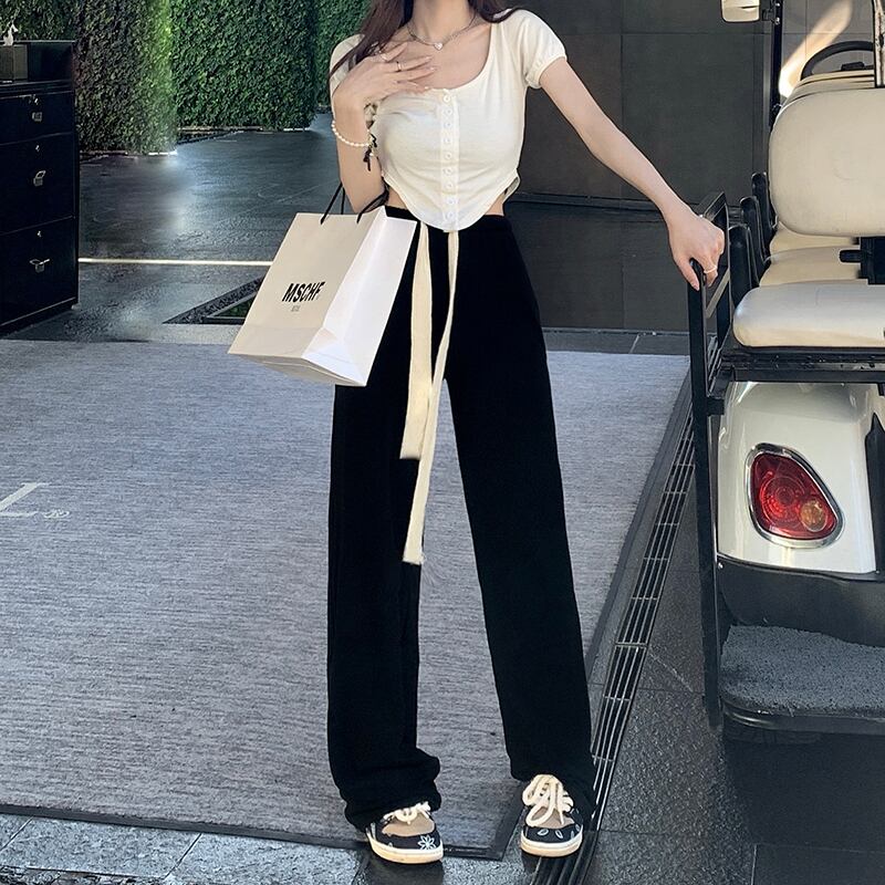 色:より多くのTの不規則な控除,黒いズボン